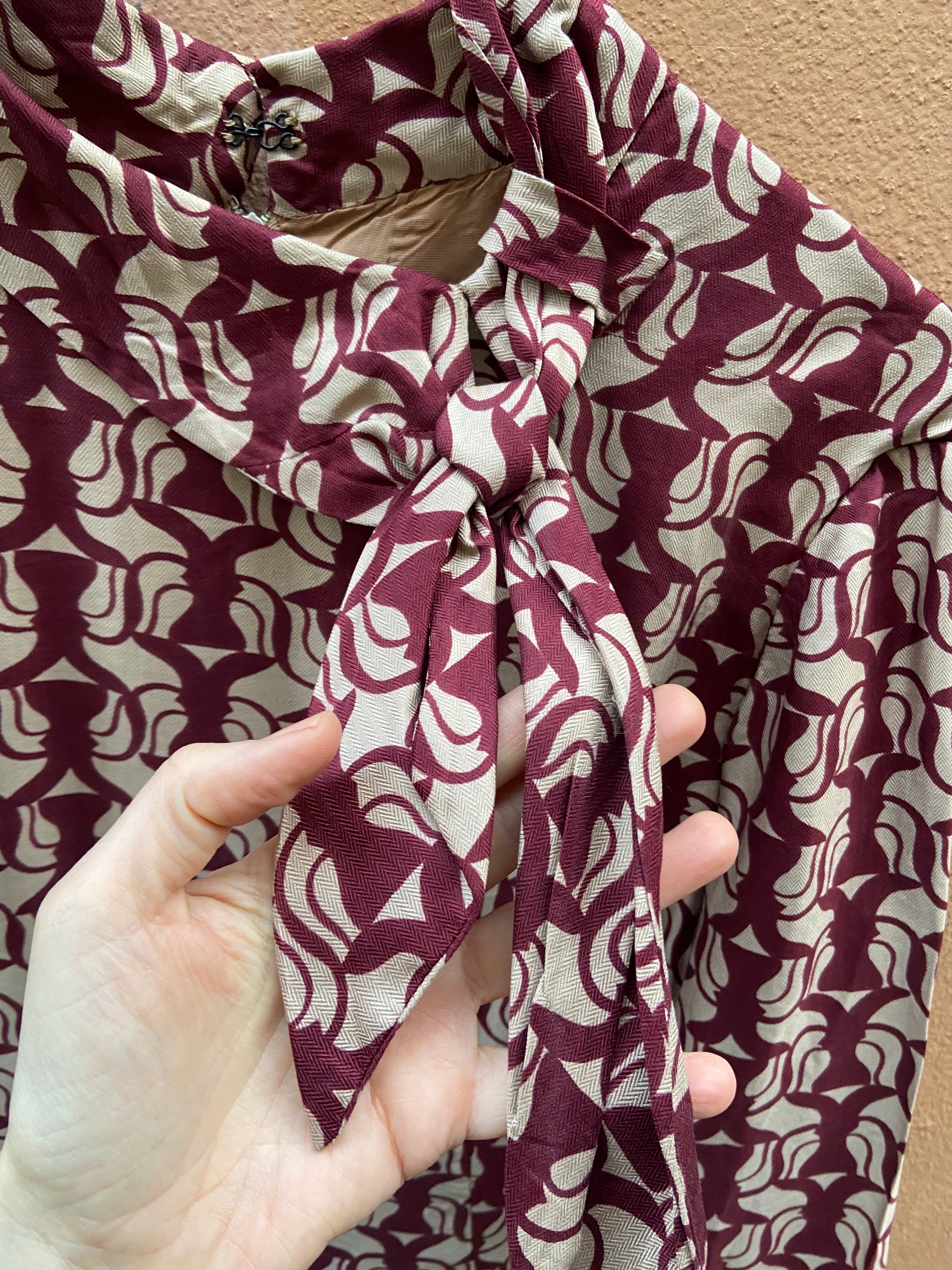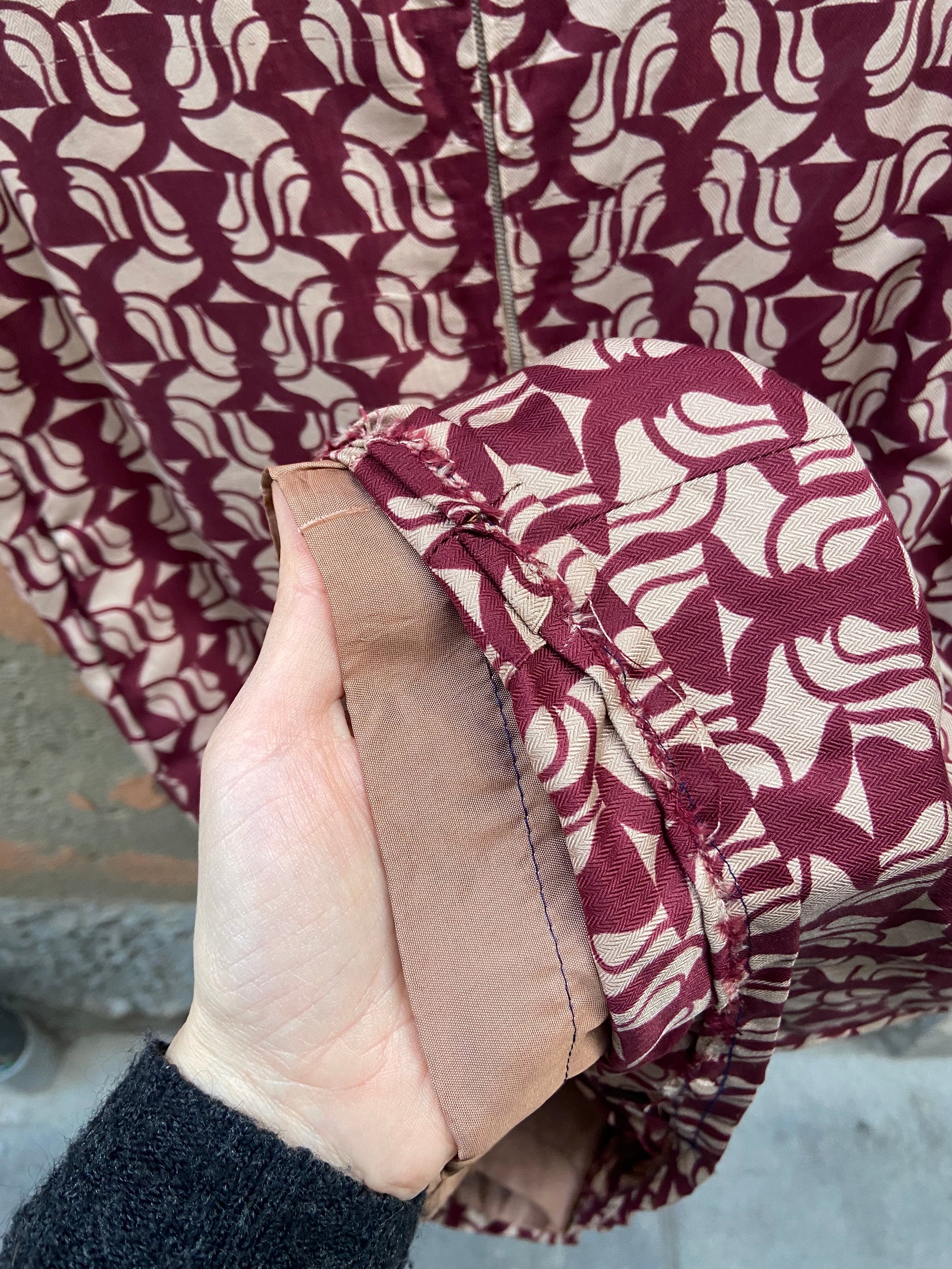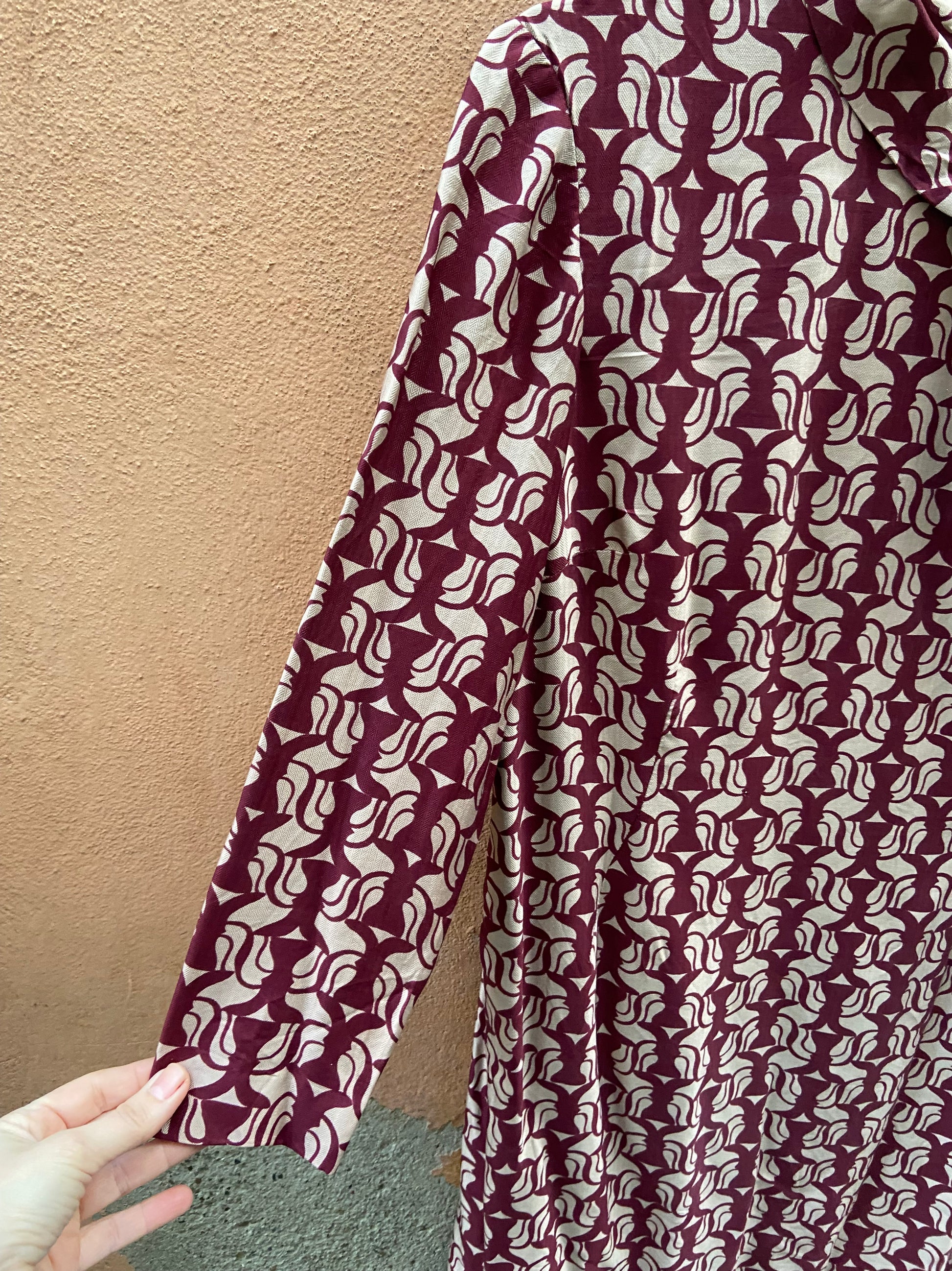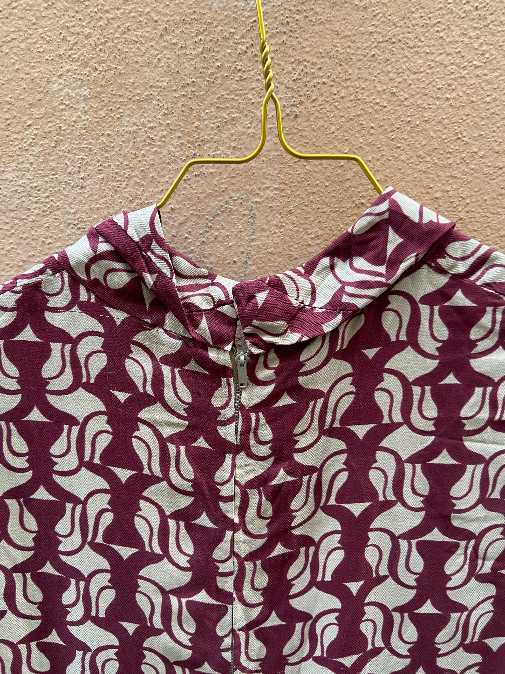 Fantasia viscosa foderato cerniera sulla schiena veste una taglia 42