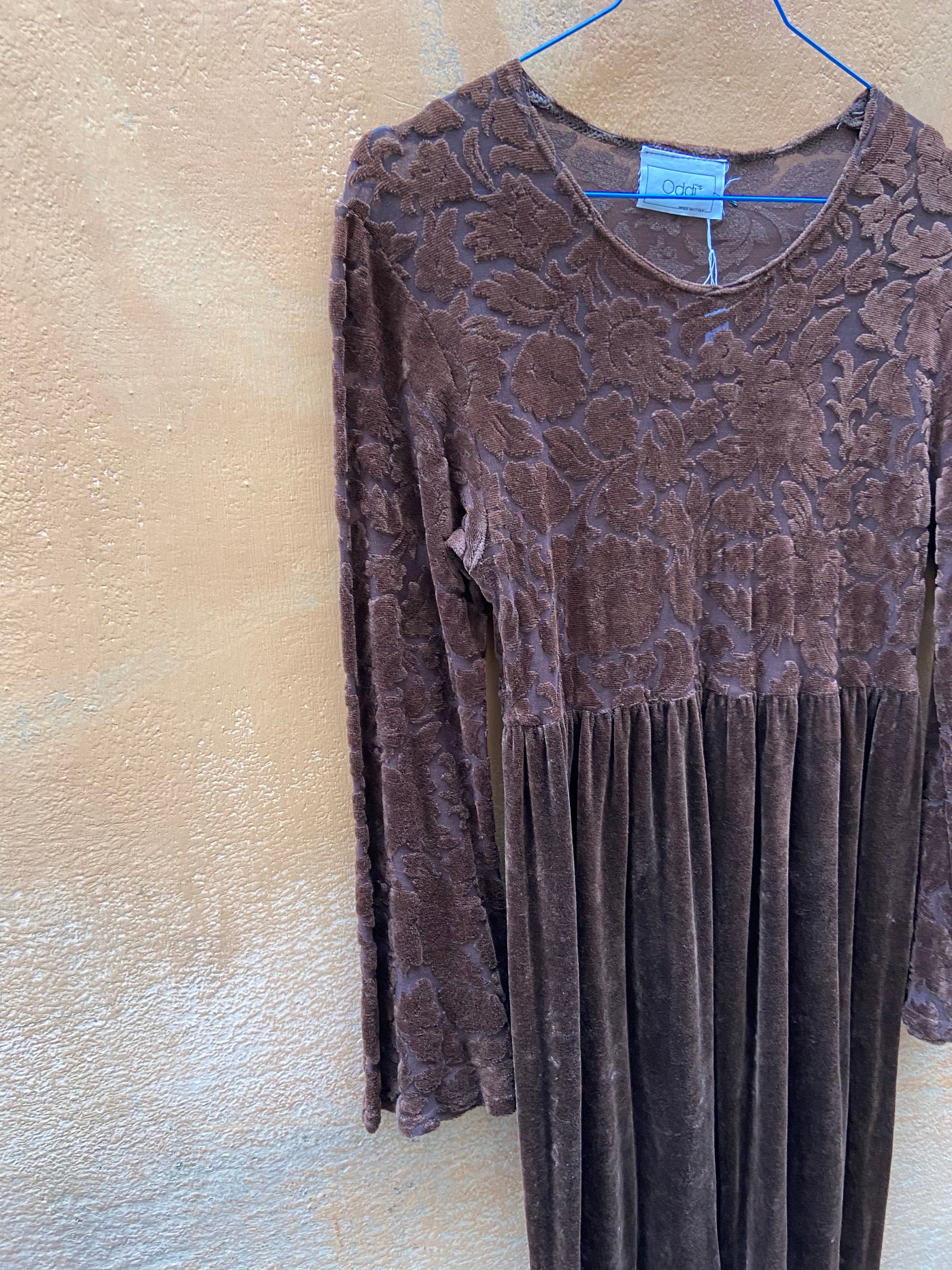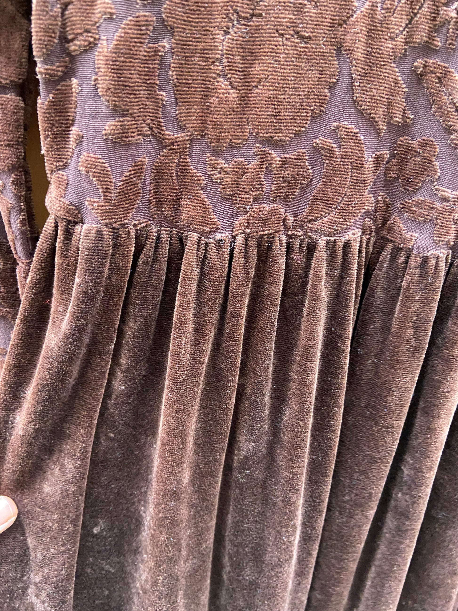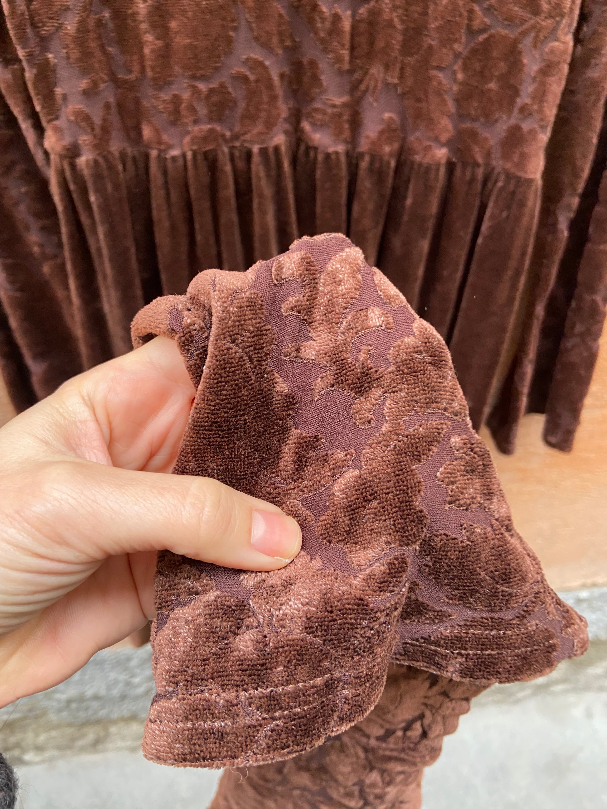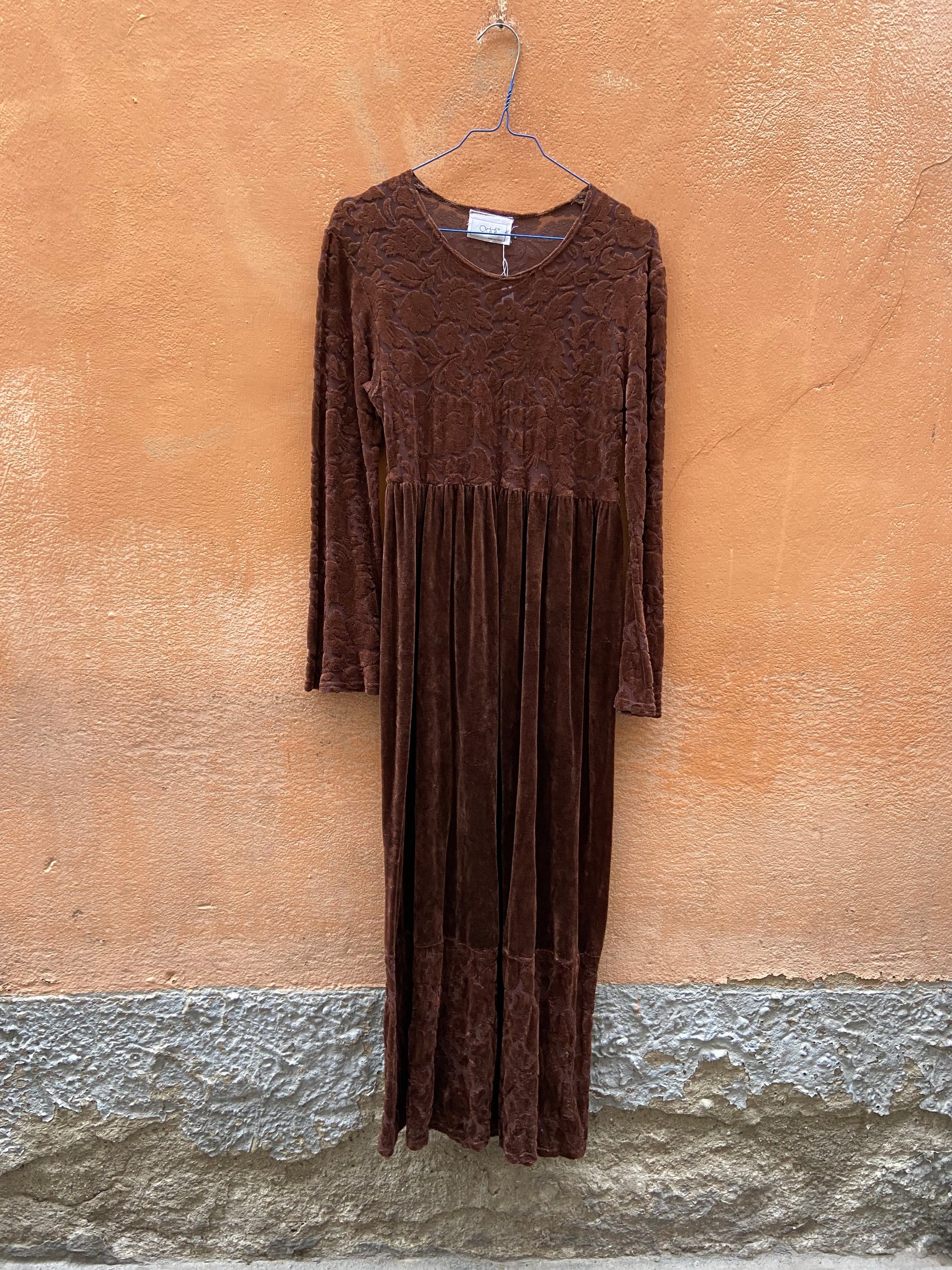 Abito lungo taglia 42, indicato veste 42 44 perché è molto elastico in ciniglia, cotone viscosa, condizioni ottime e colore marrone damascato