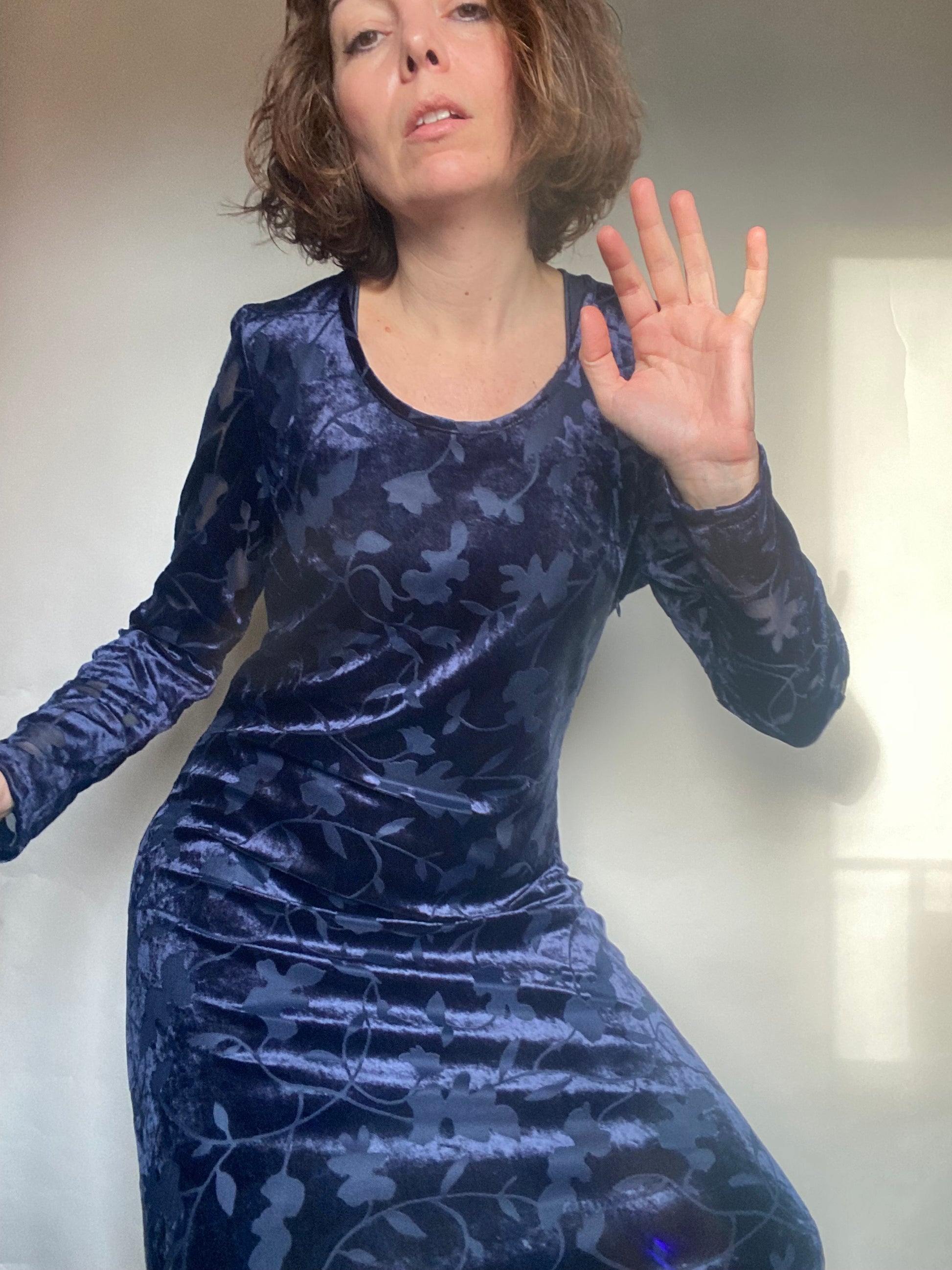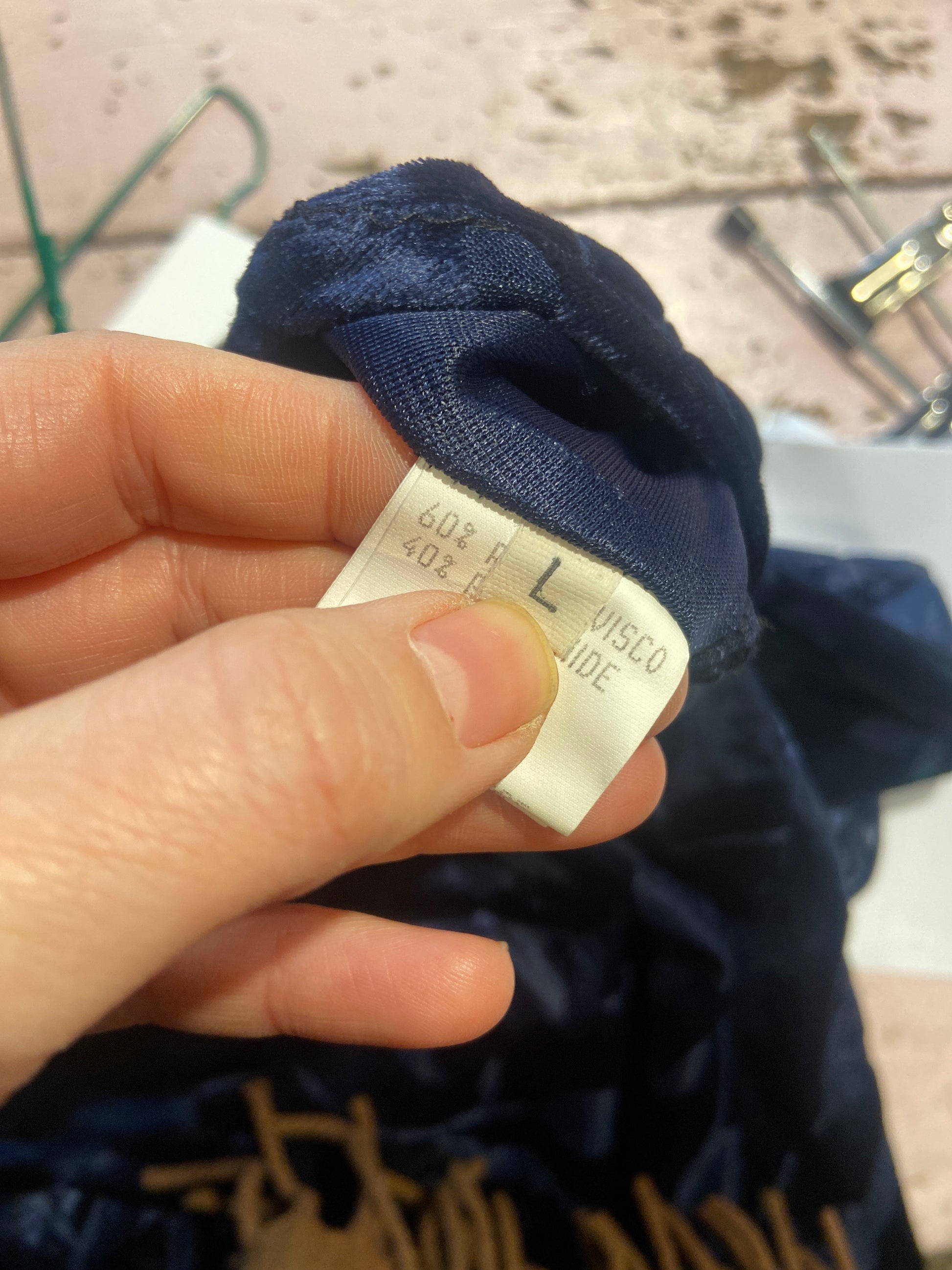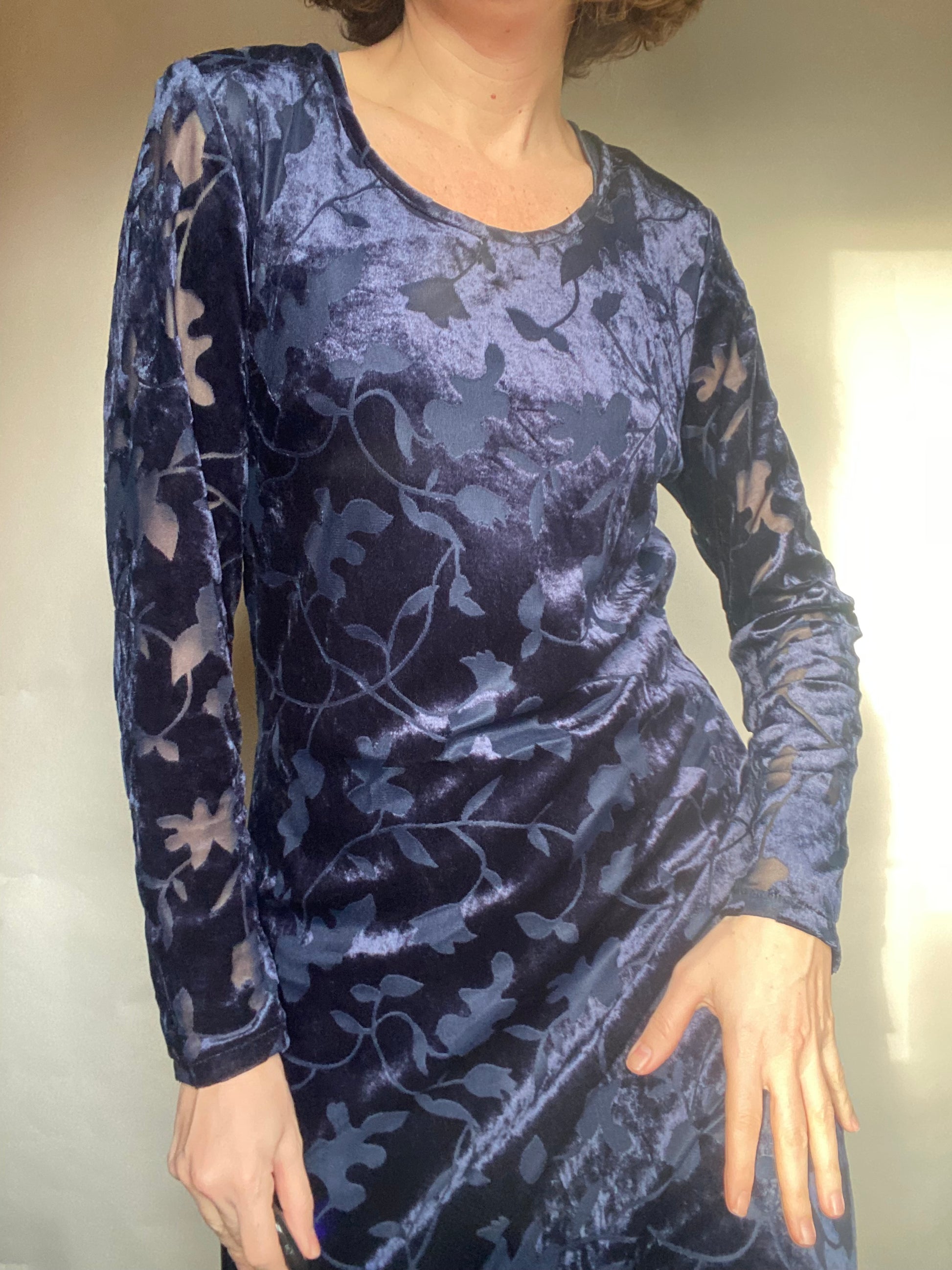 Abito lungo 90s made in Italy tg L indicata blu damascato foderato cerniera laterale