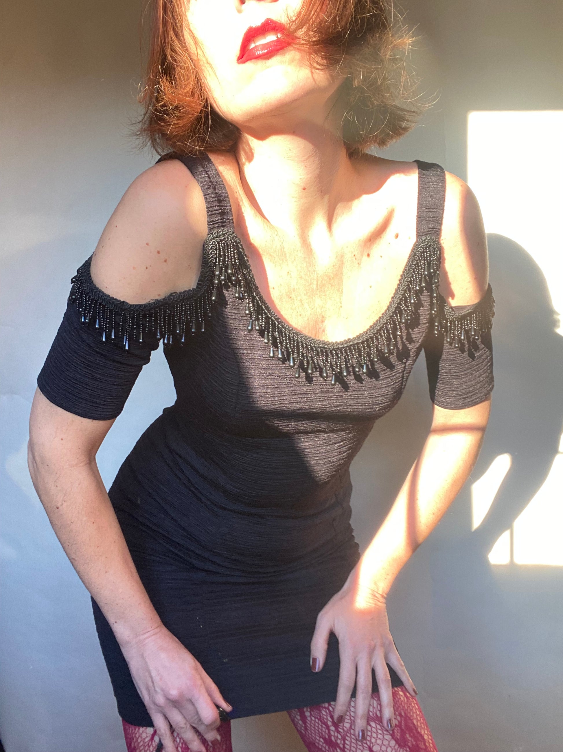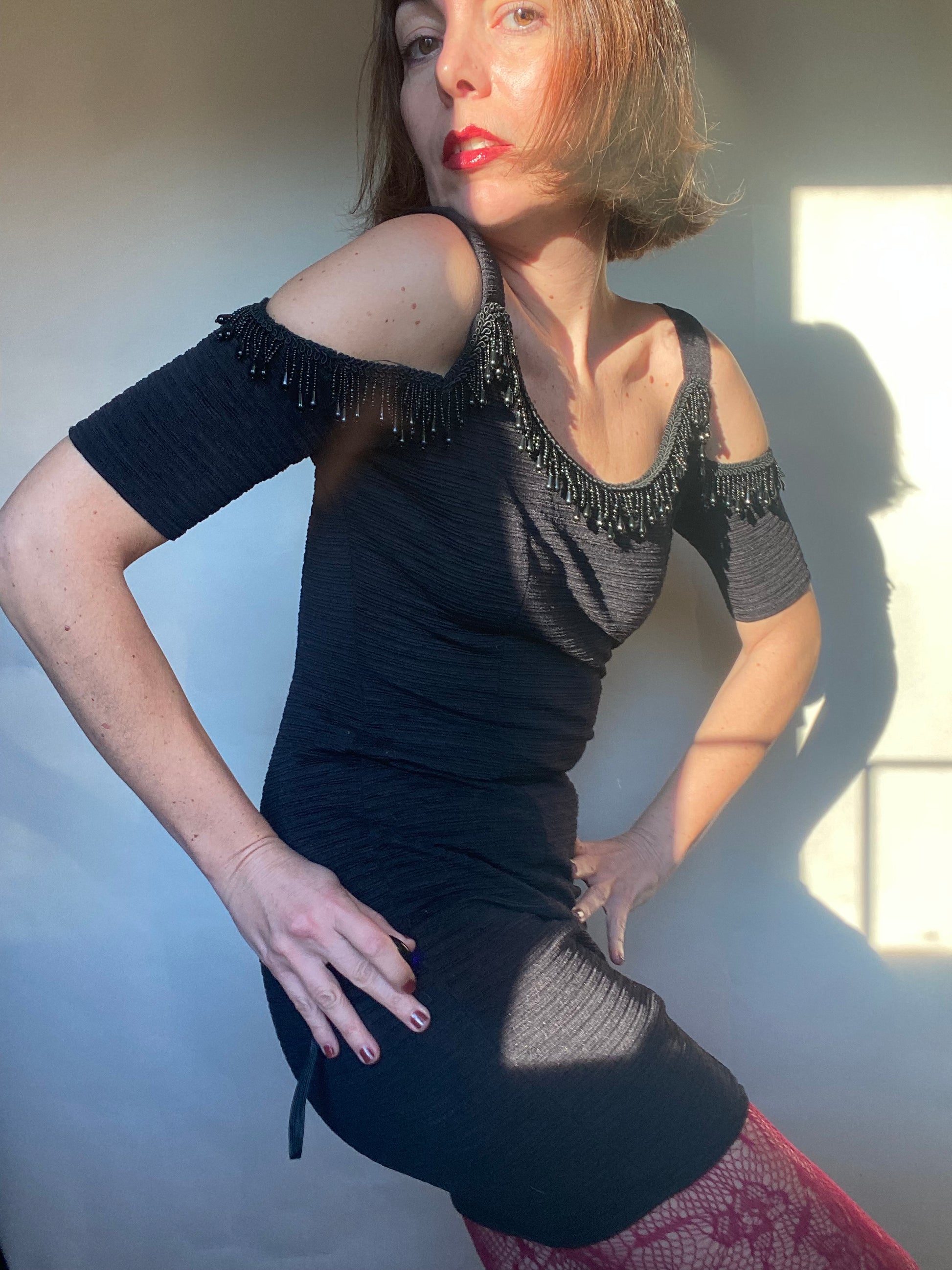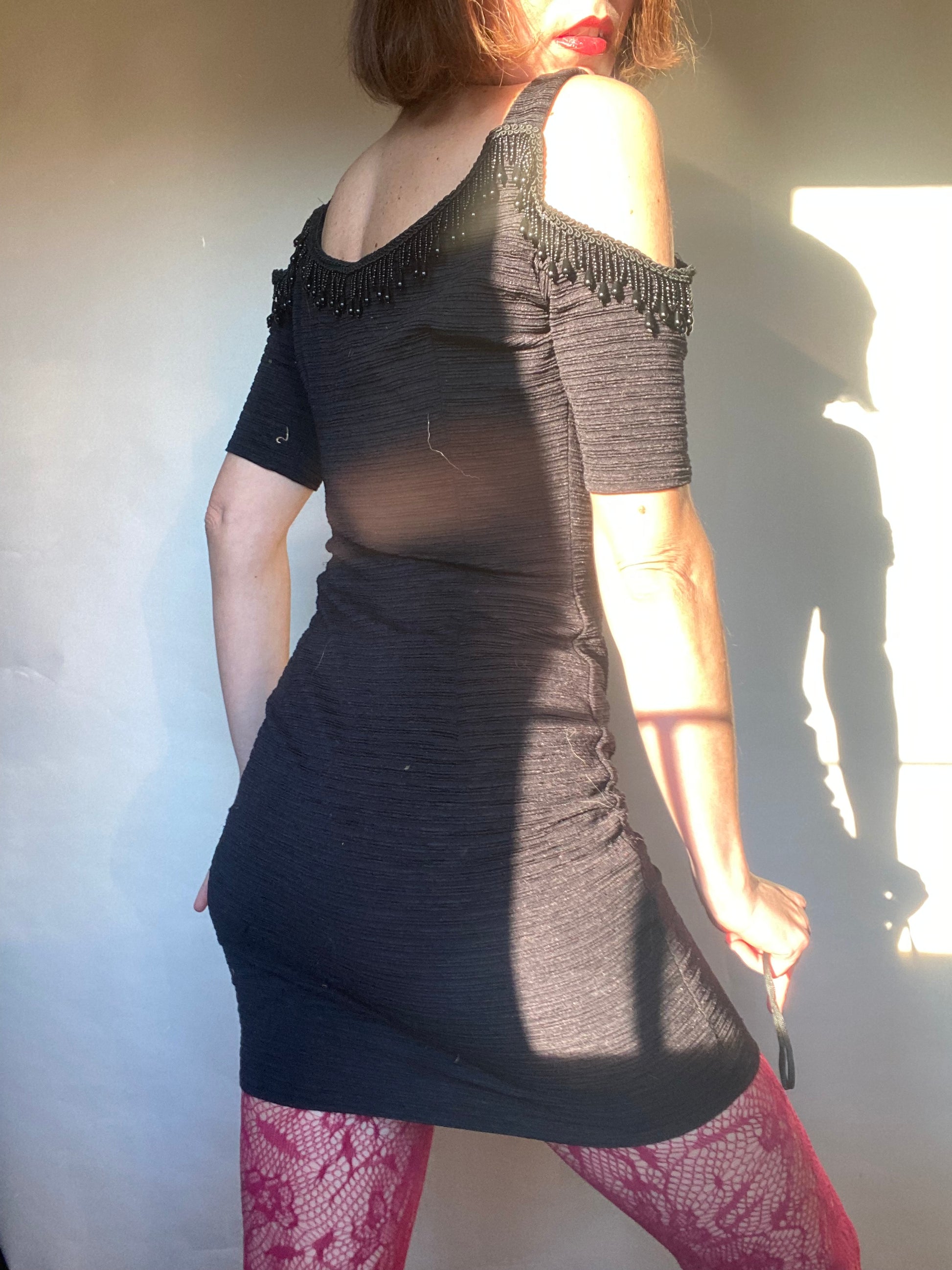 Abito vintage anni 80 made in England stretch non ci sono indicazioni in Italia. Lo consiglio per una taglia S è completamente elastico. Le condizioni sono ottima. Ci sono le perline sulle manica e sullo scollo è davvero carino e perfetto per le feste di capodanno.