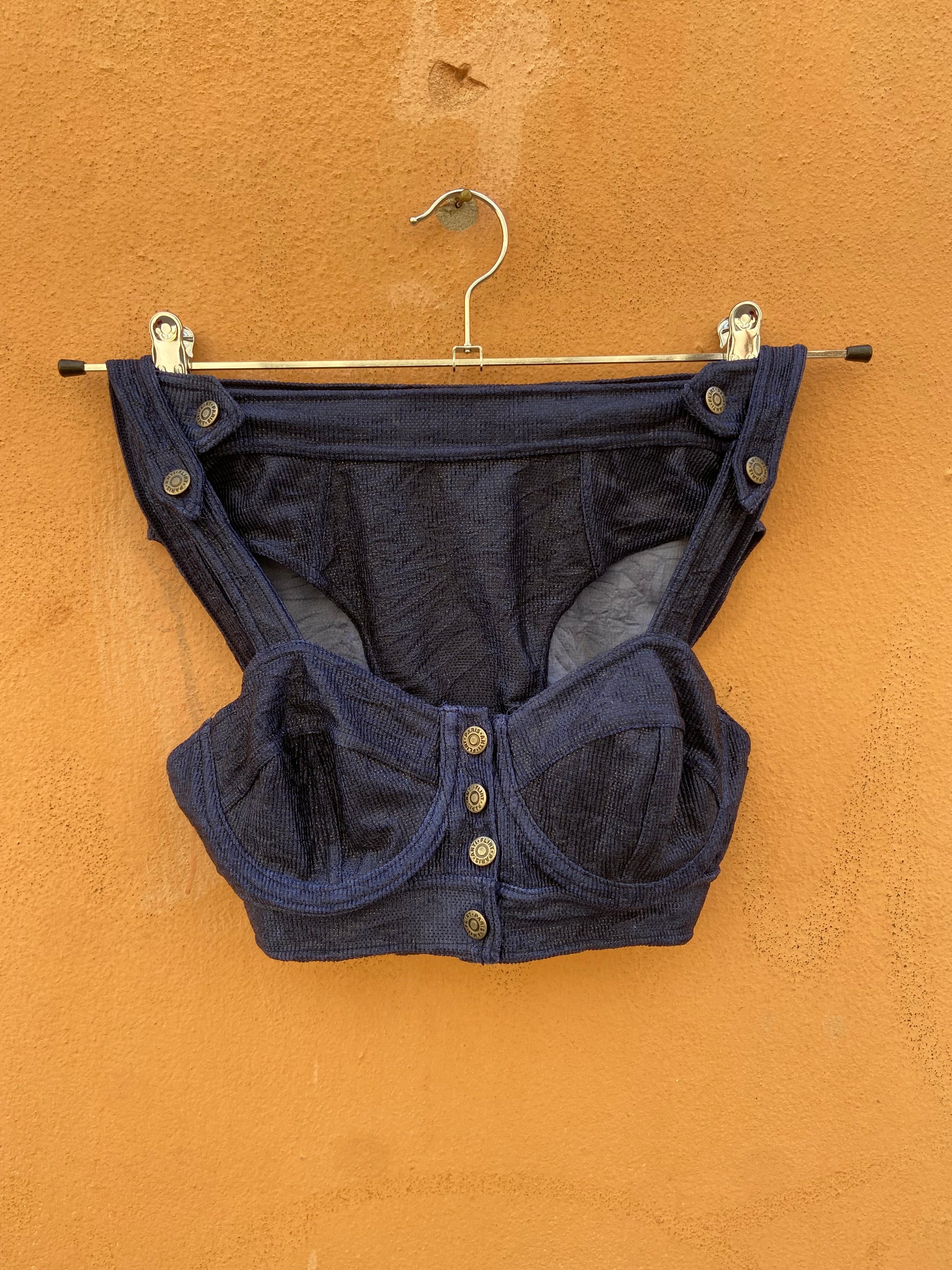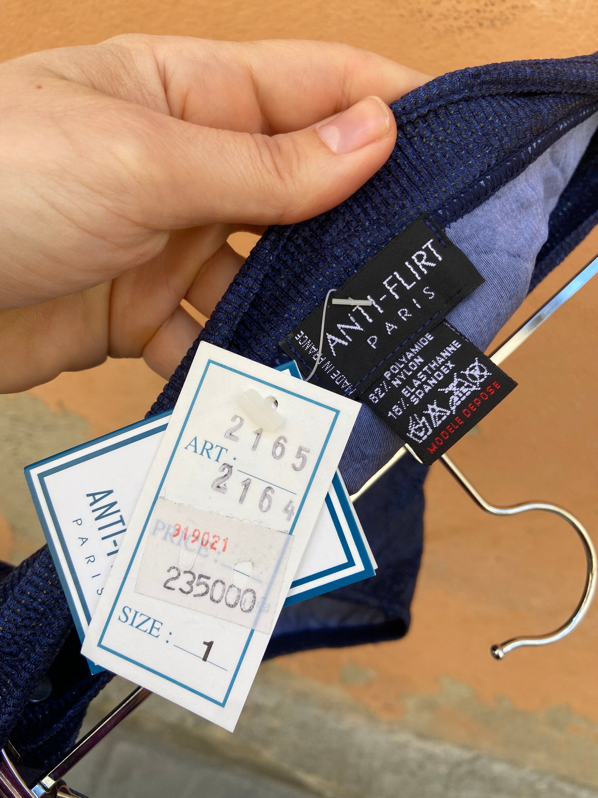Vintage anni 90 Dead stock ancora con etichetta bikini marca Antifkirt paris made in France prezzo di vendita 235.000 lire condizioni nuovo slip vita alta reggiseno a corpetto con ferretti