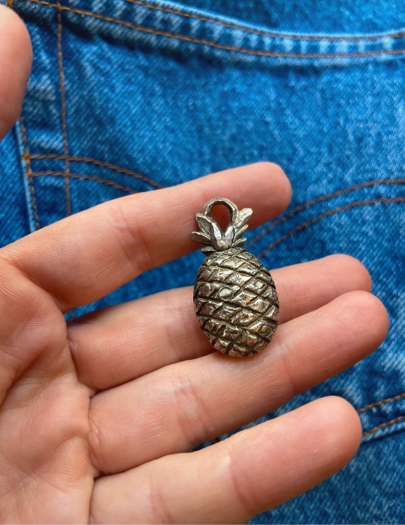 Collana lunga o cintura in metallo vintage anni 70, con ananas, abbastanza pesante, il ciondolo, condizioni ottime
