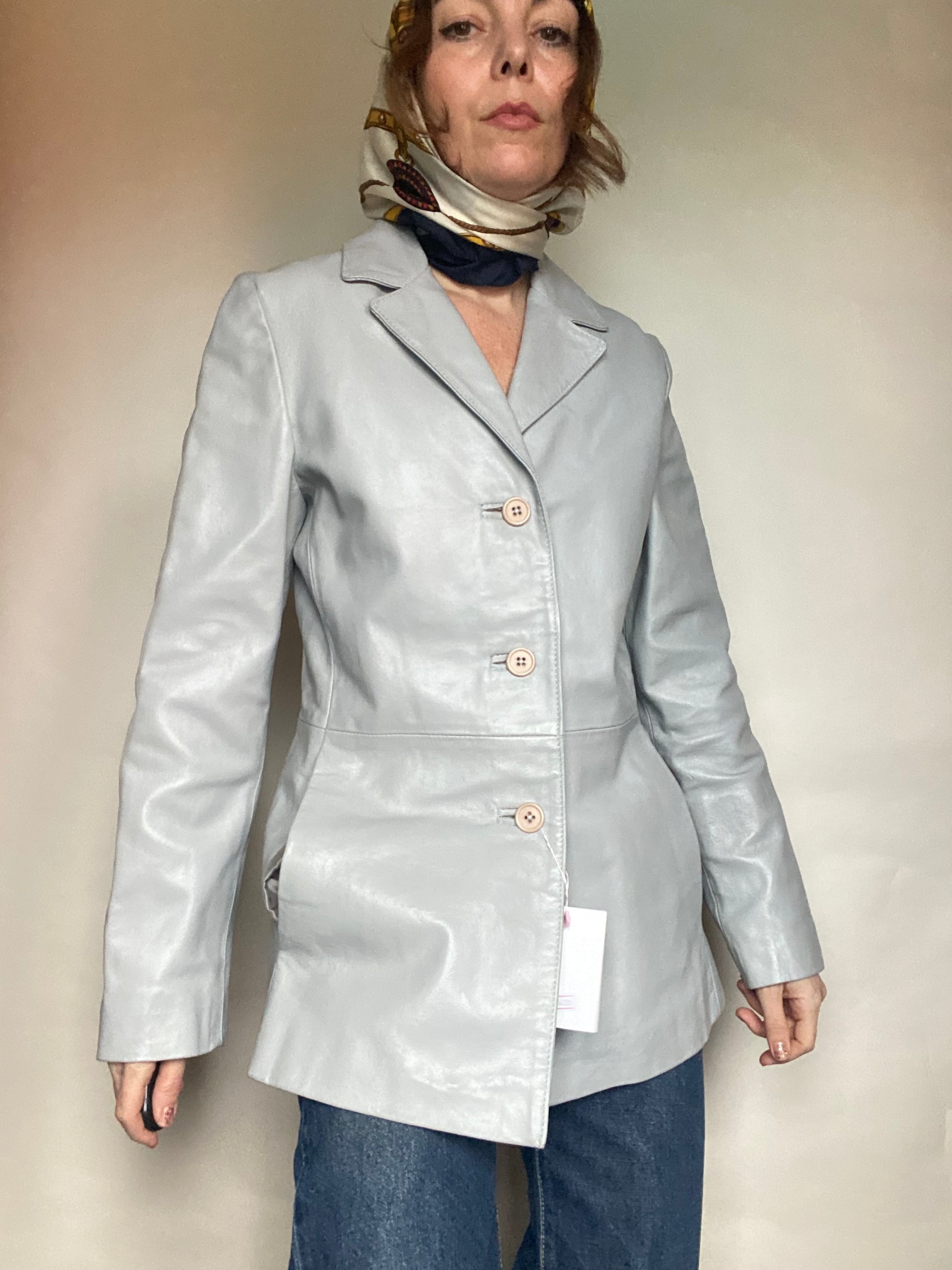 Giacca grigia in pelle 70s