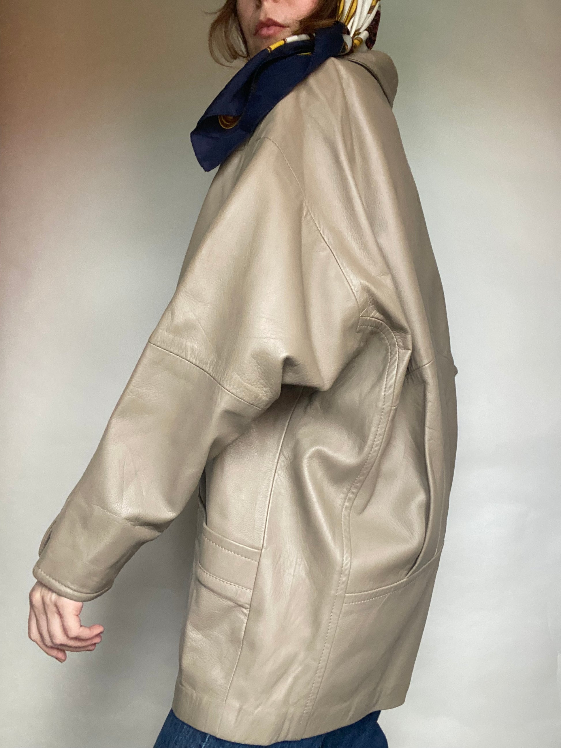 Giacca pelle tortora oversize