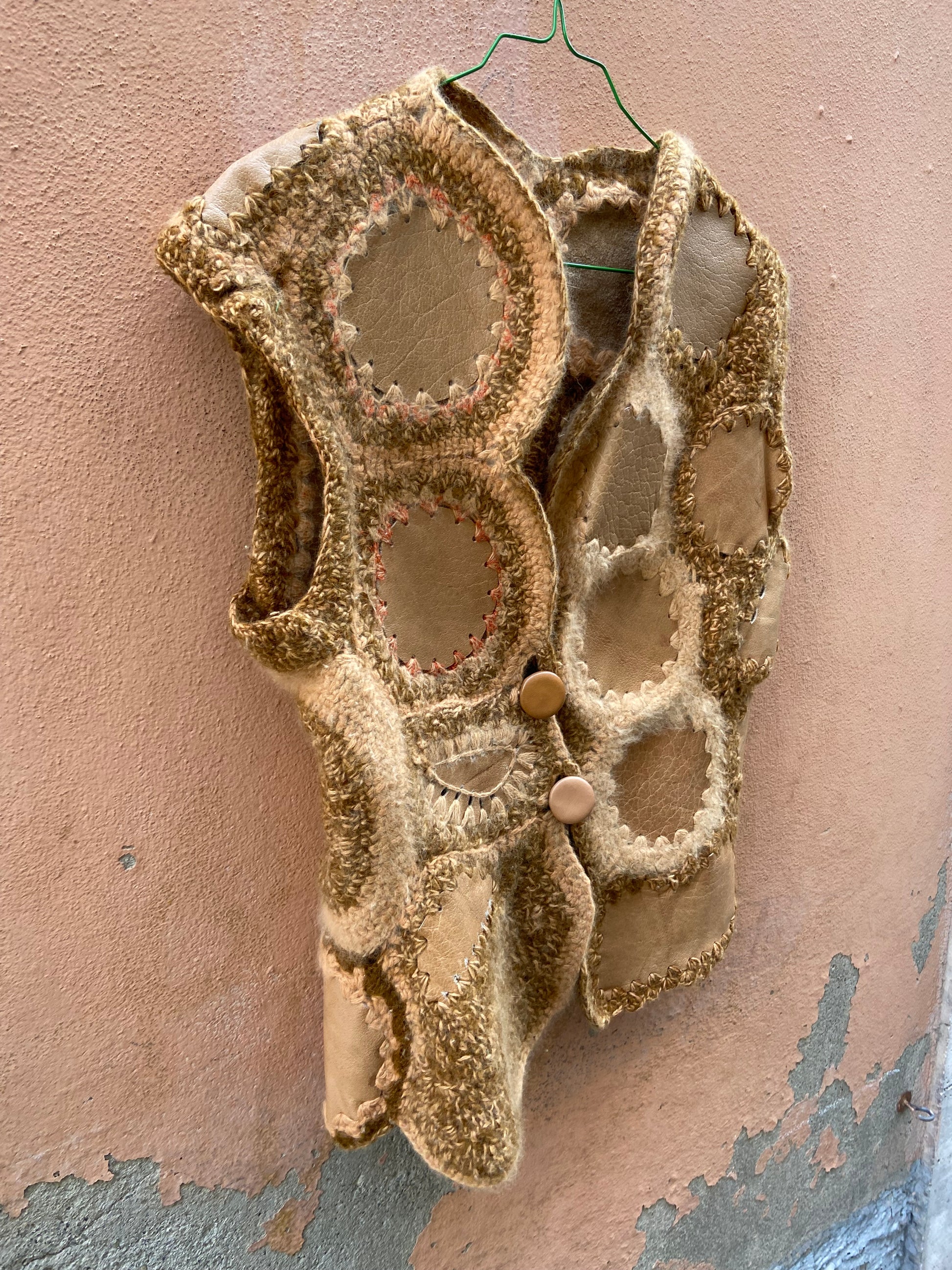 Gilet artigianale made in Italy Firenze in pelle e lana assemblato a mano non ci sono indicazioni d’Italia consiglio 40 42 condizioni ottime