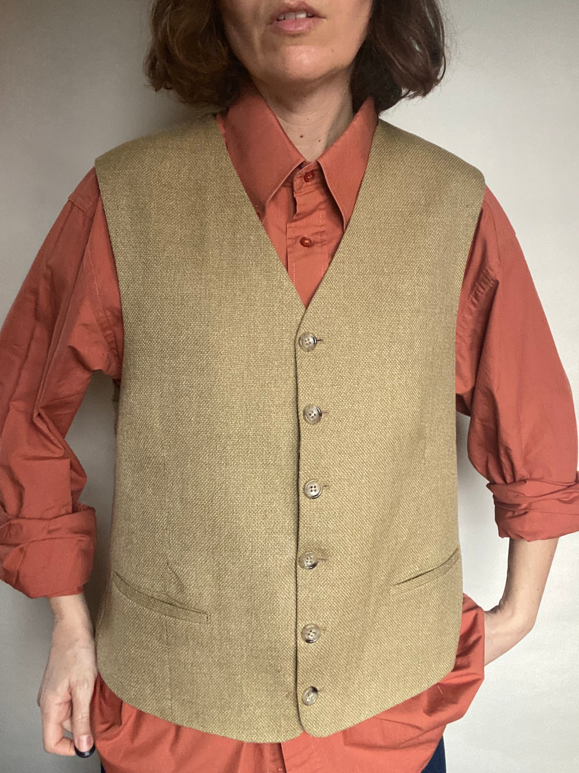 Gilet vintage nuovo mai usato, taglia 50 indicate in puro lana petto 50, 54 cm fibbia sul retro per regolare la grandezza