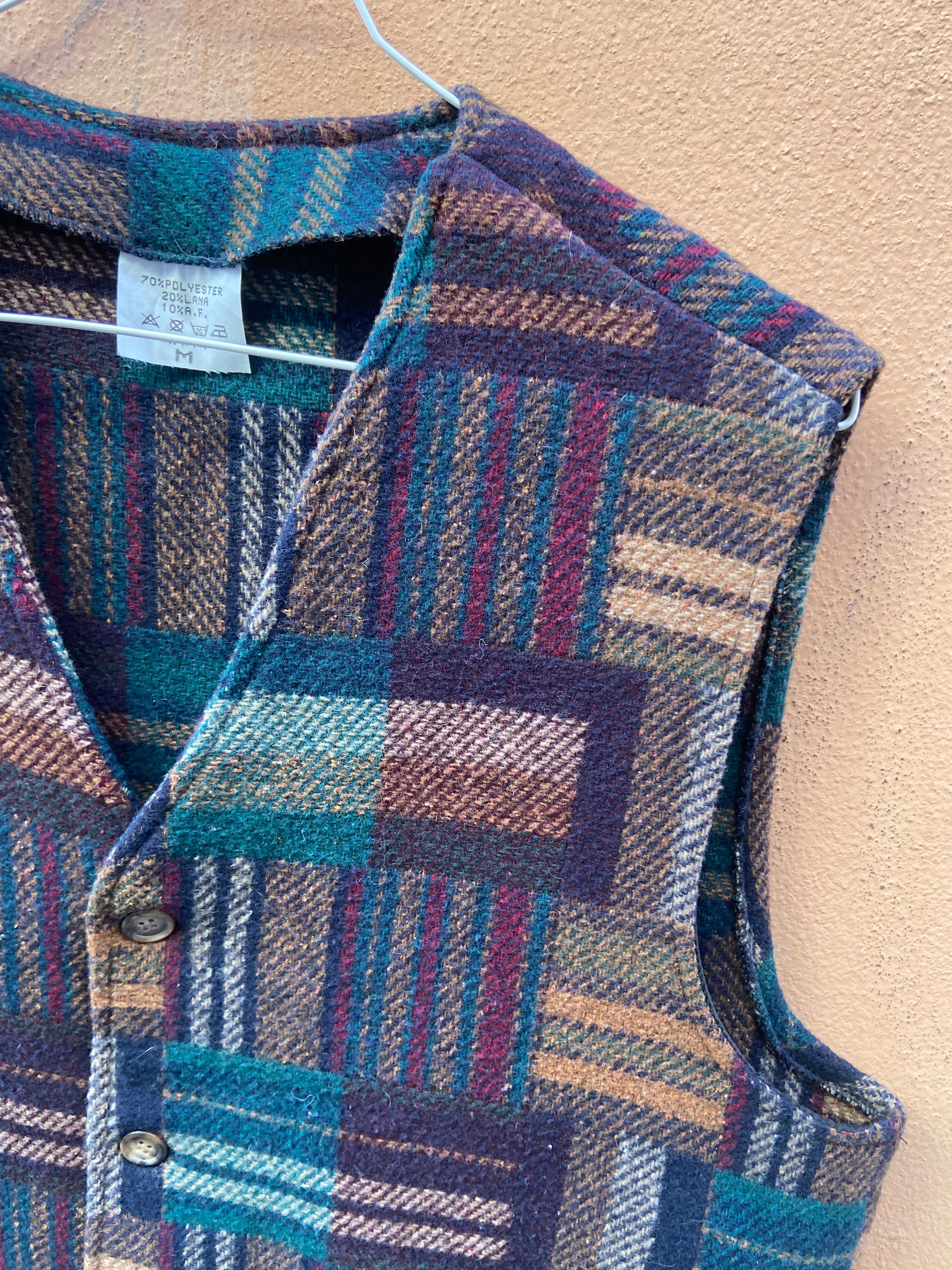 Soft vintage 90s multi-coloured wool vest wool indicato M veste largo petto 58cm