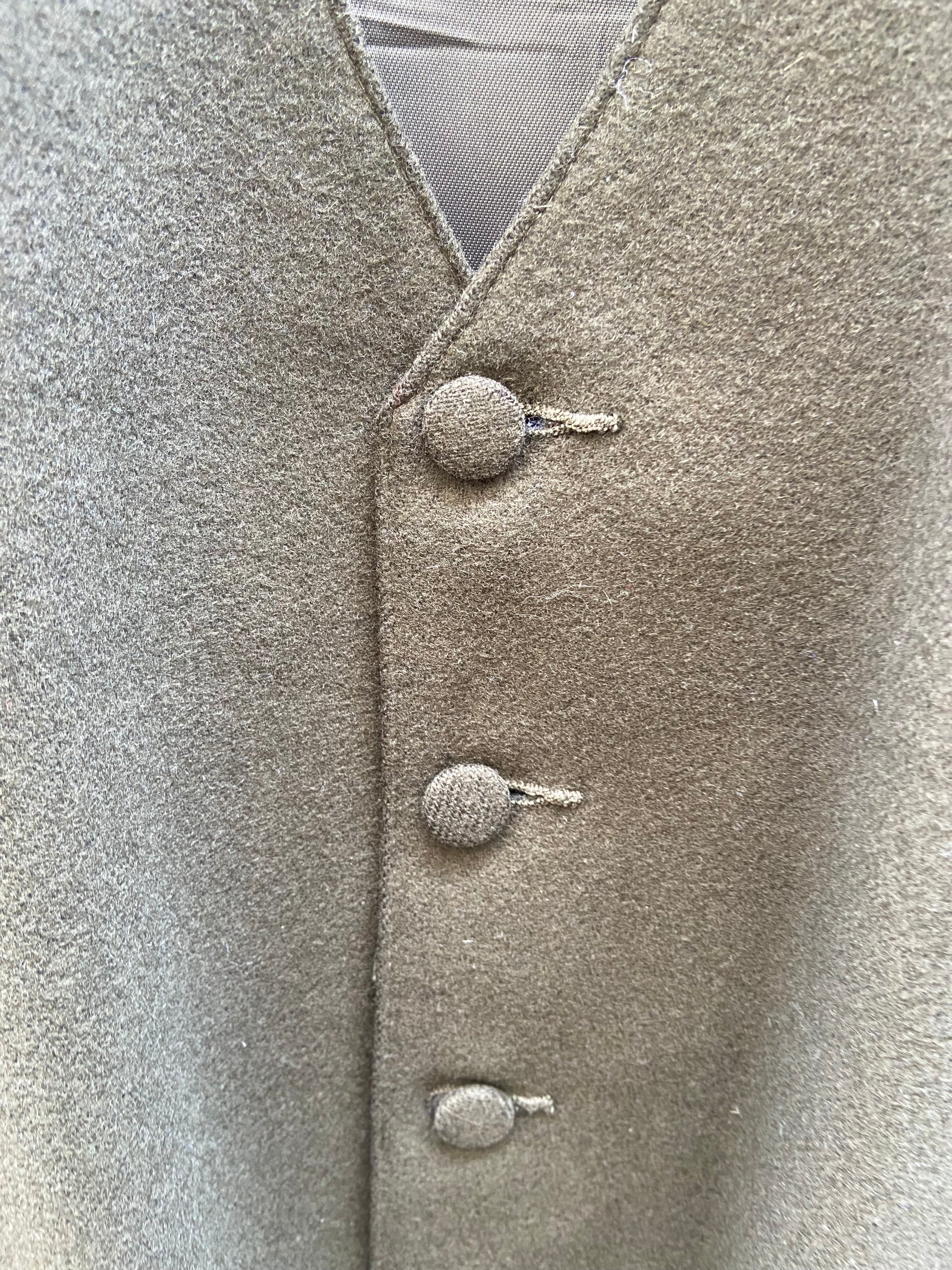 Gilet 80 lana 20 poliestere color verde cachi come nuovo condizioni ottime con bottoni ricoperti, indicato taglia XL retro regolabile con la doppia lo consiglio per una L e nei punti sotto l’ascelle lungo 50, 54 cm