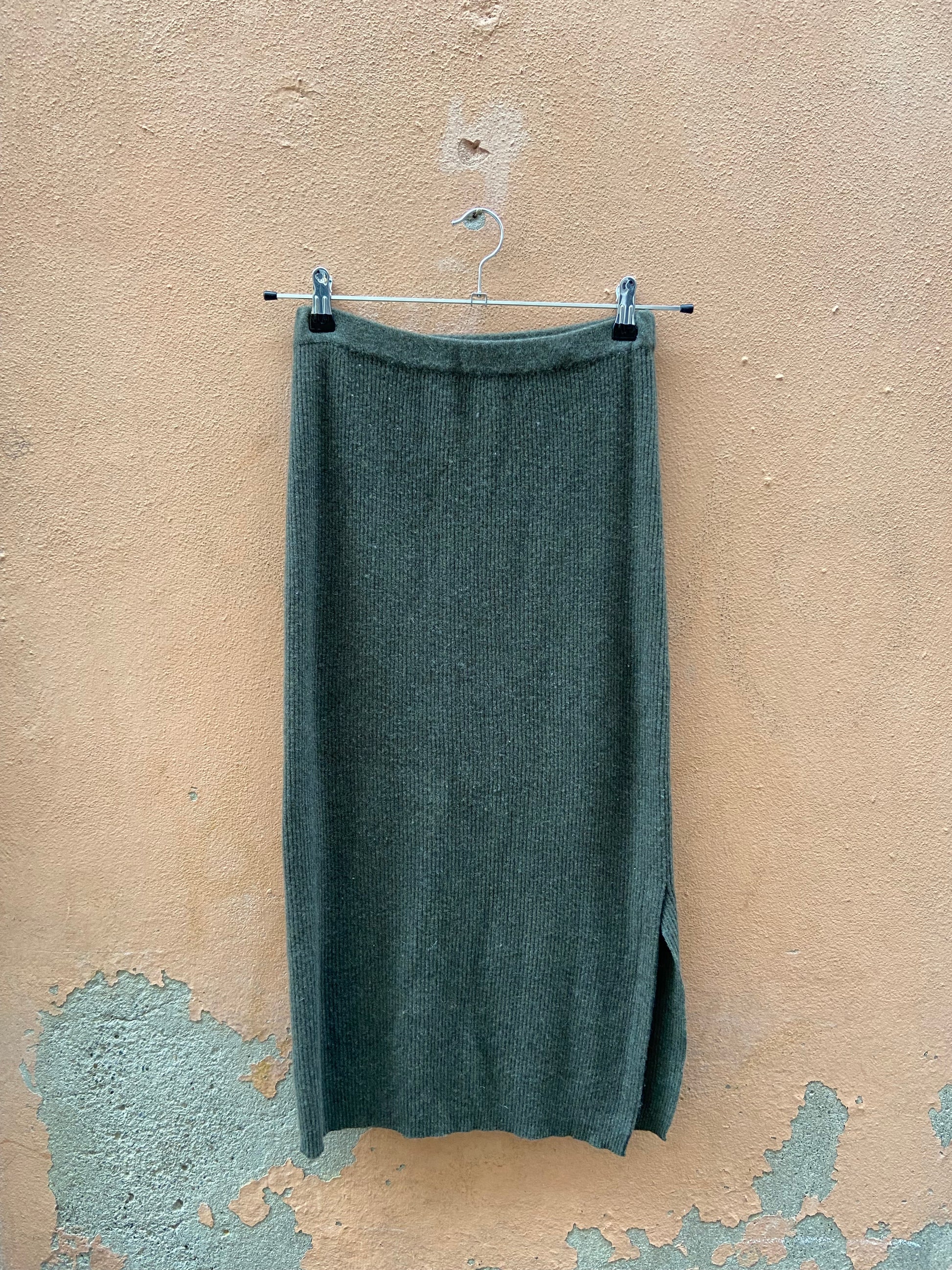 Gonna in lana MIDI a costine color cachi taglia 40, indicata con elastico in vita veste morbida va bene fino a 44 condizioni ottime non buchino tarme