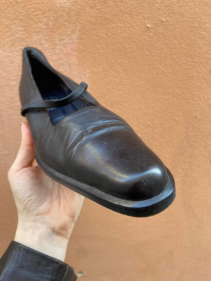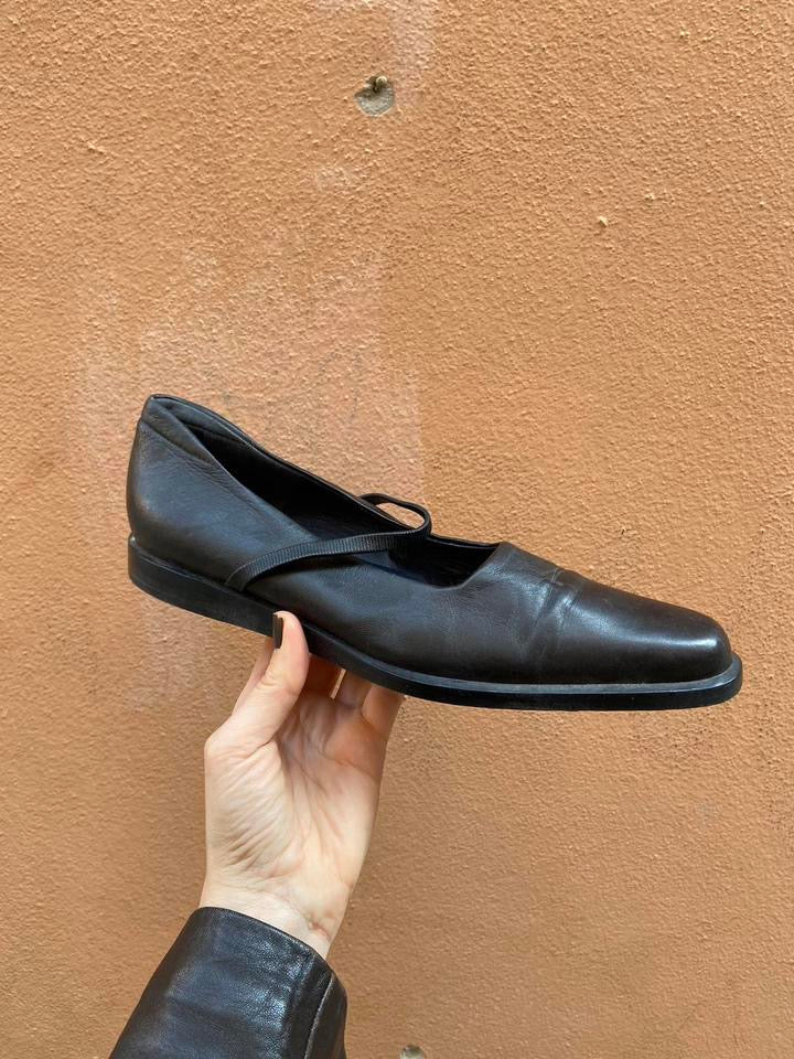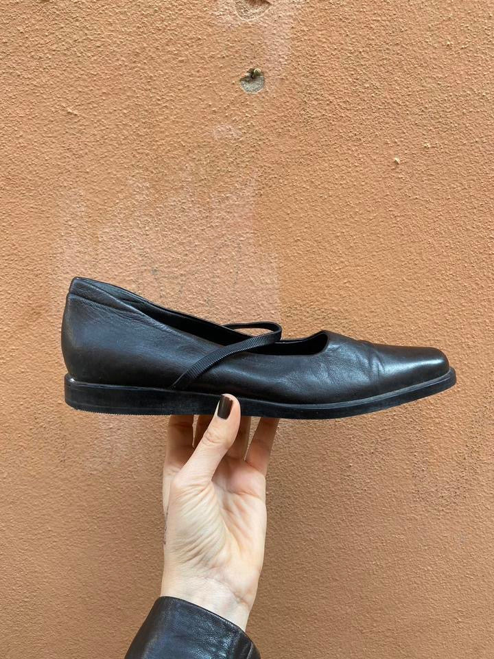 Black leather ballet flats with a touch of grunge charm #grungevibes #balletflats