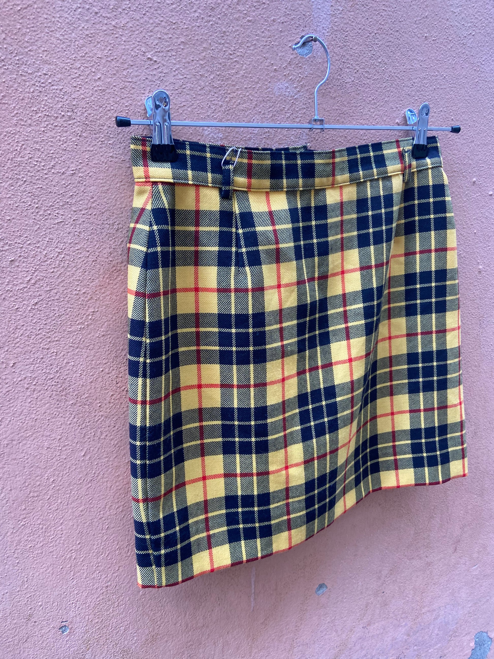 Mini vintage in lana, vita alta, taglia 42, cerniere bottone sul retro