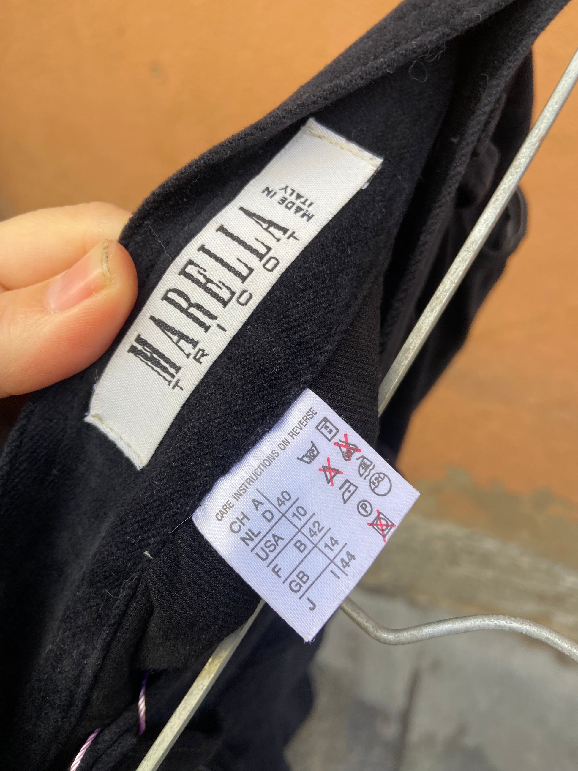 Minigonna Marella tricot anni 90 in velluto nero liscio, puro cotone, taglia 44, indicata consiglio taglia 42, cerniera, bottoni e tasche sul retro, condizioni ottime come nuova