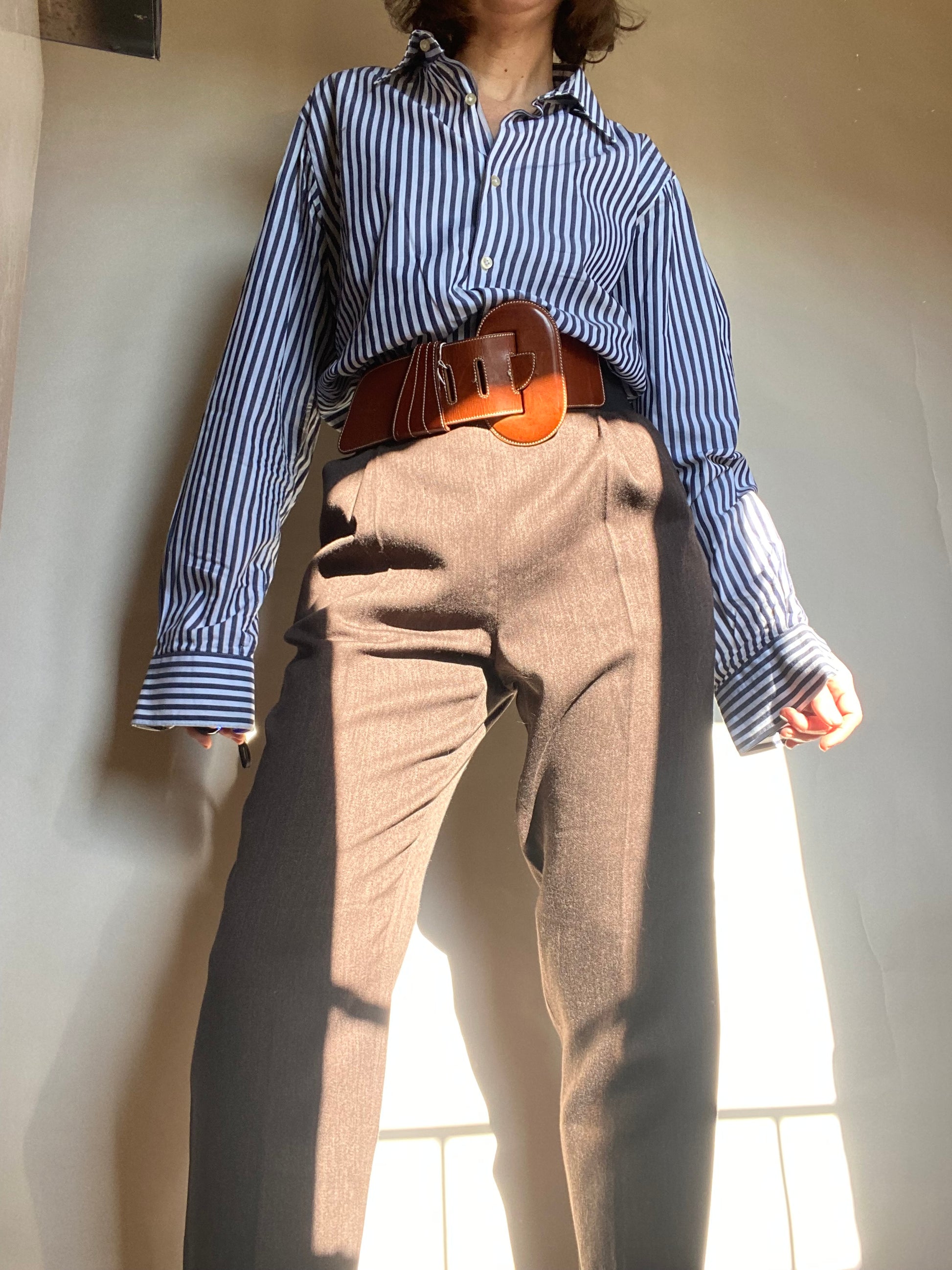 Bellissimo pantalone, in lana taglia indicata 42 condizioni ottime c’è solo un mini segno sul davanti che mi faccio vedere in foto il colore è un marrone leggermente mélange di vita alta