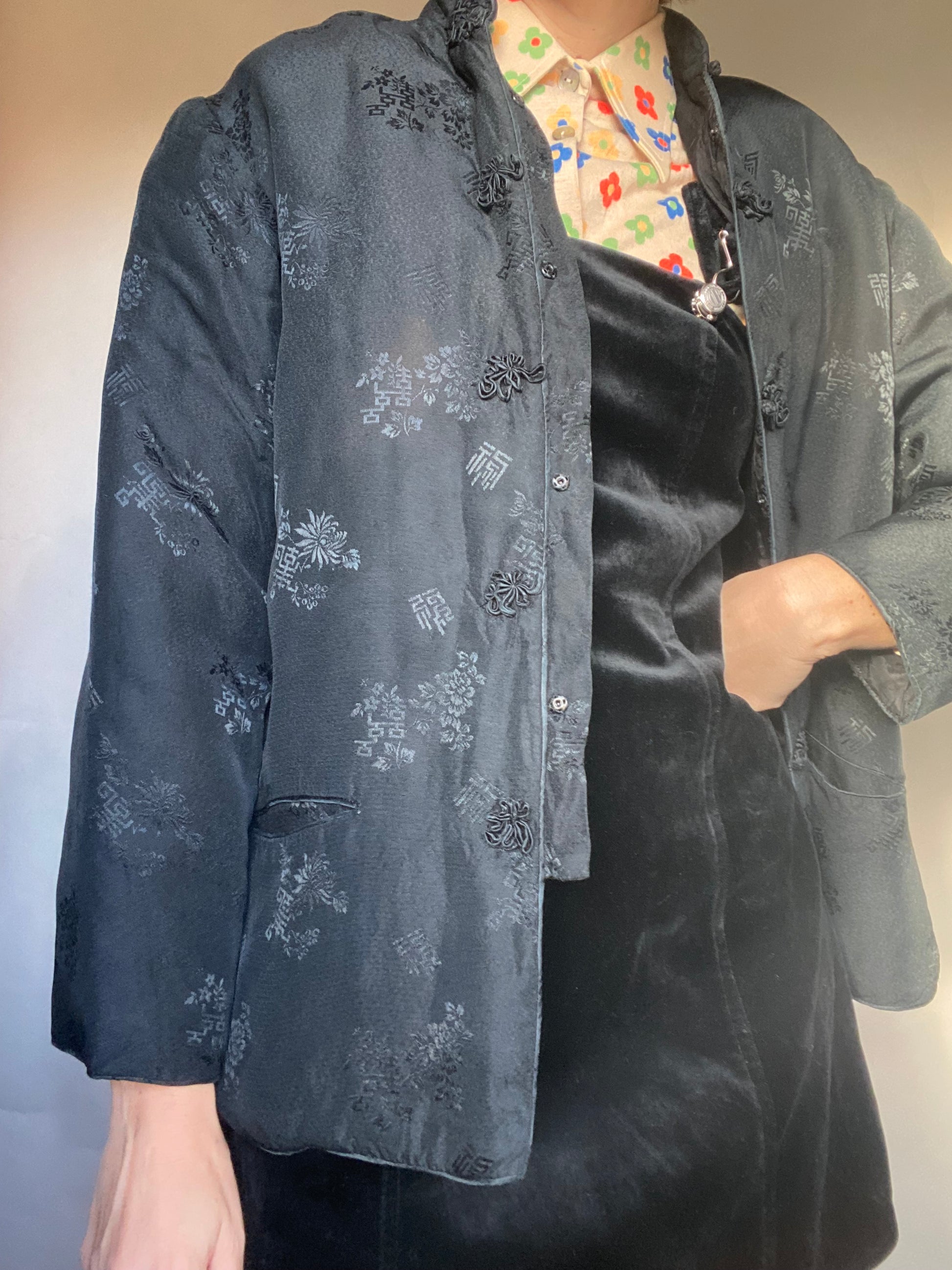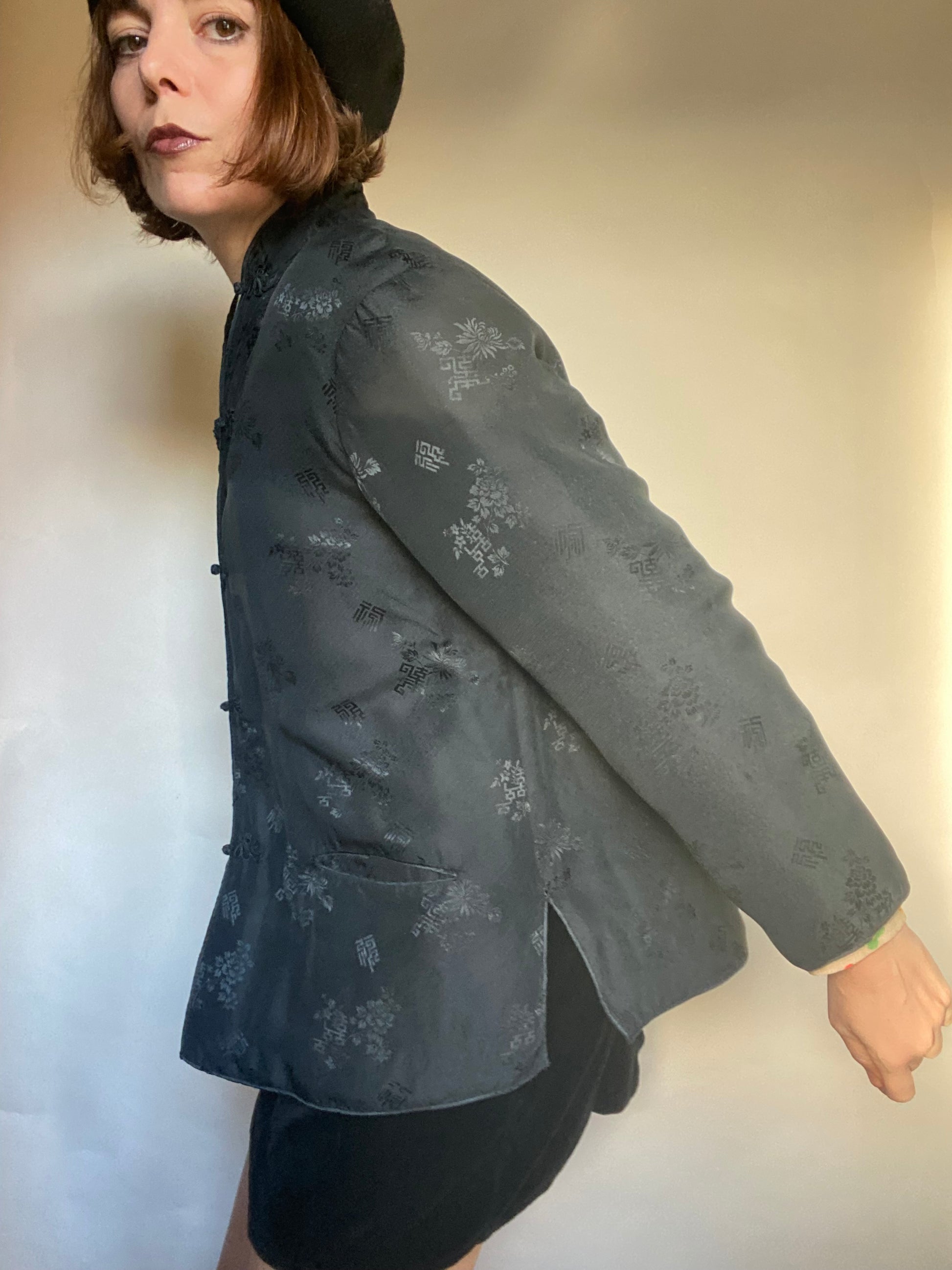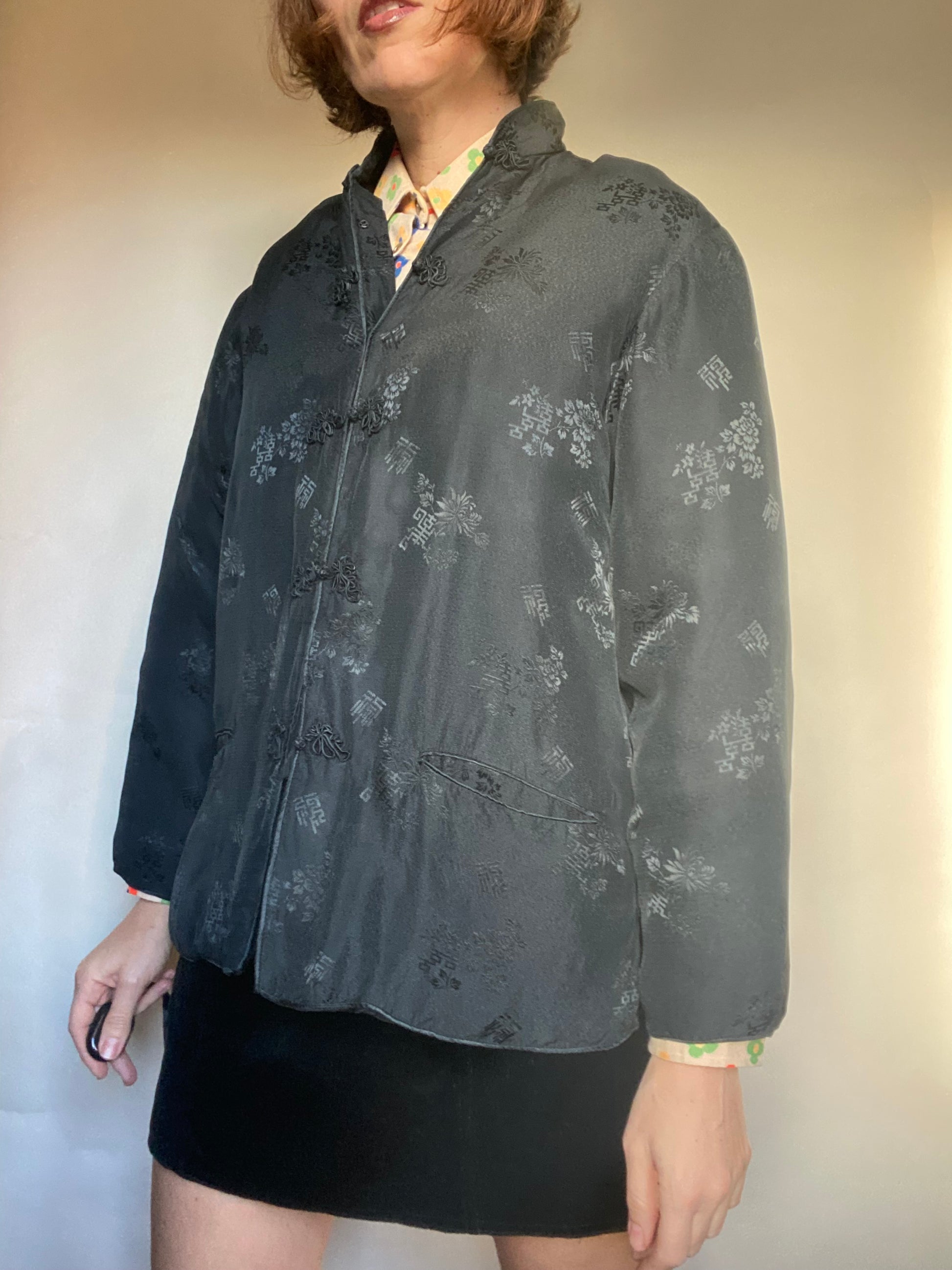Piumino leggero cinese nero con decorazioni alamari e bottoncini tg L indicata consiglio M