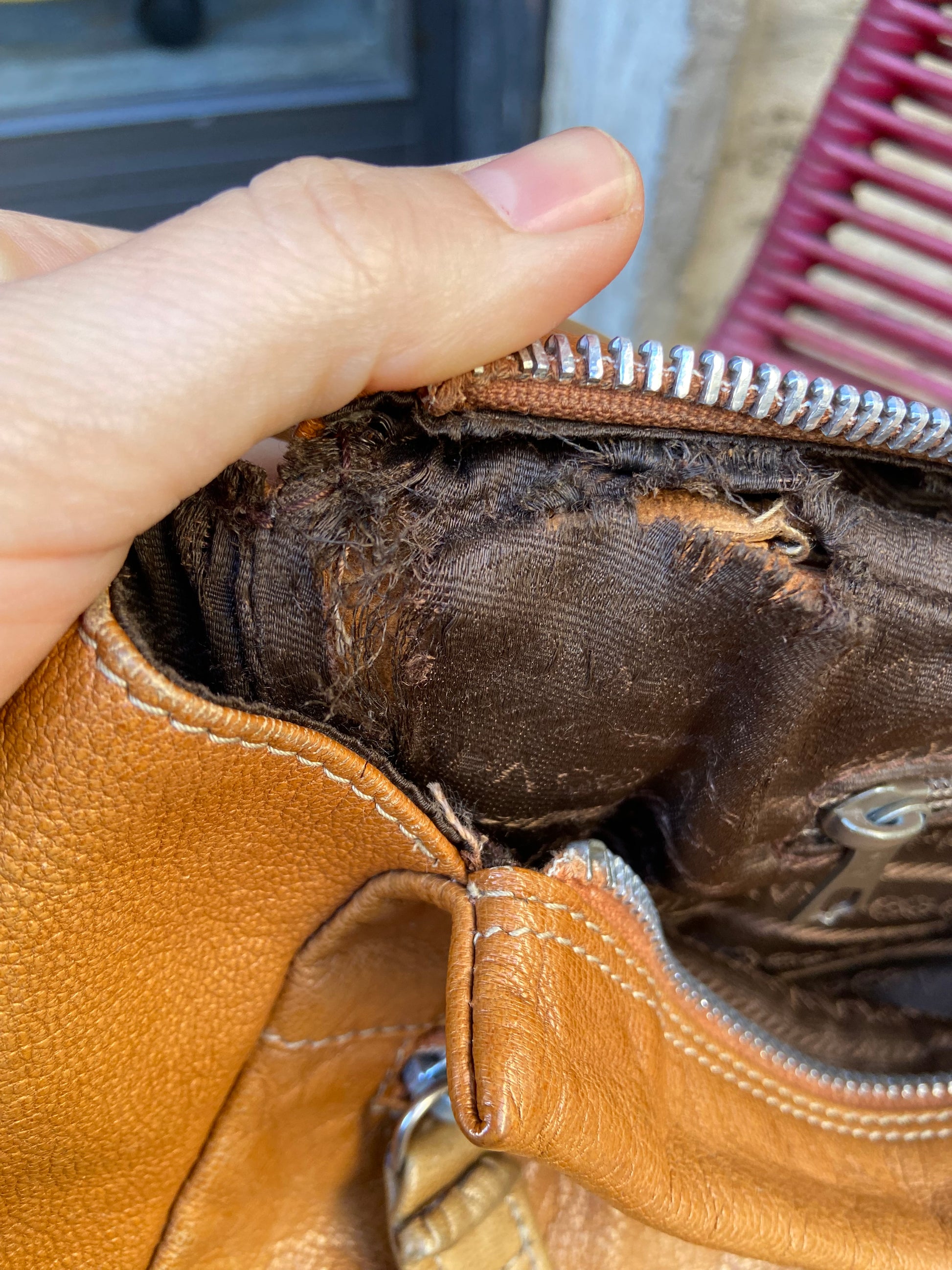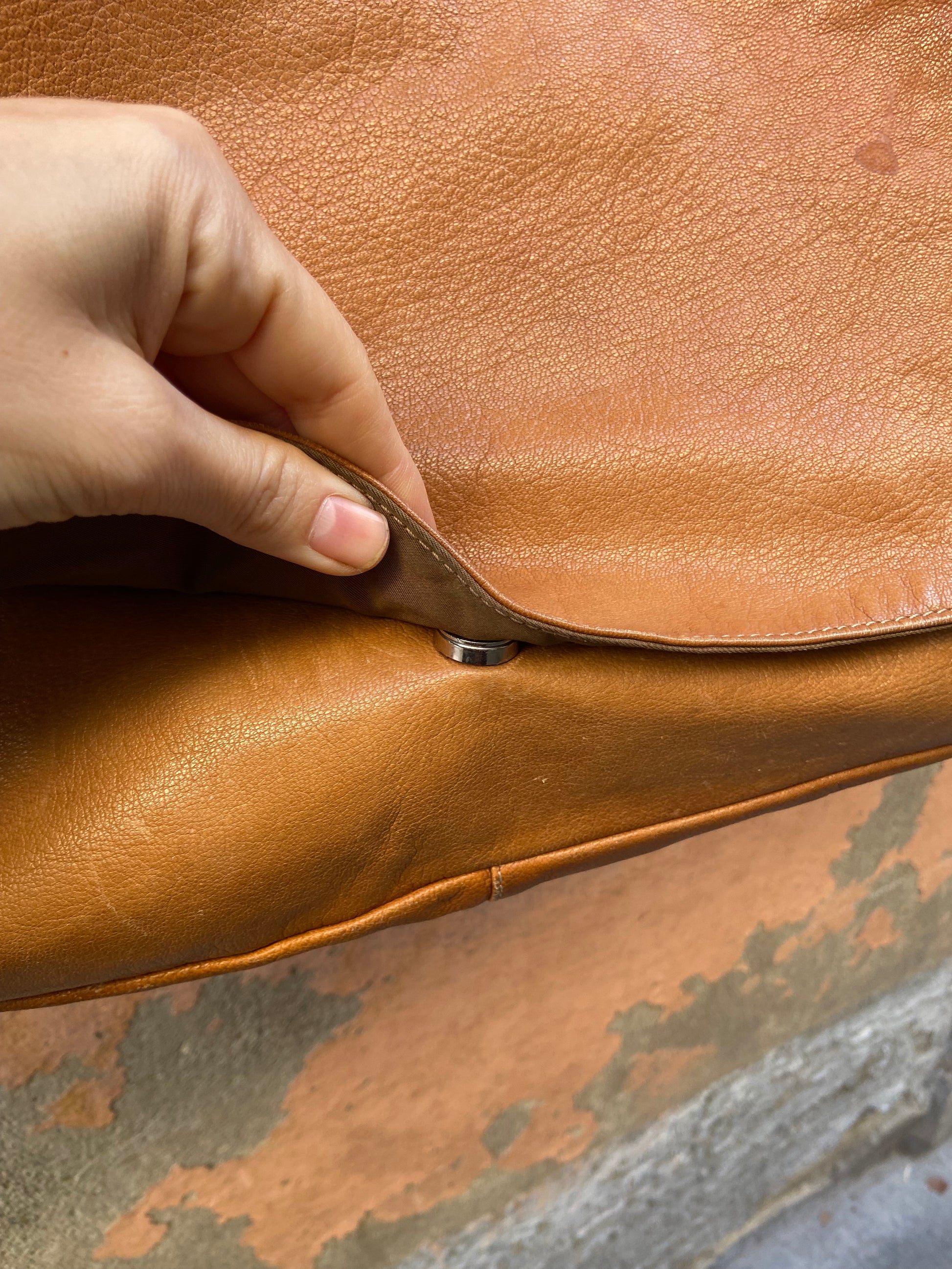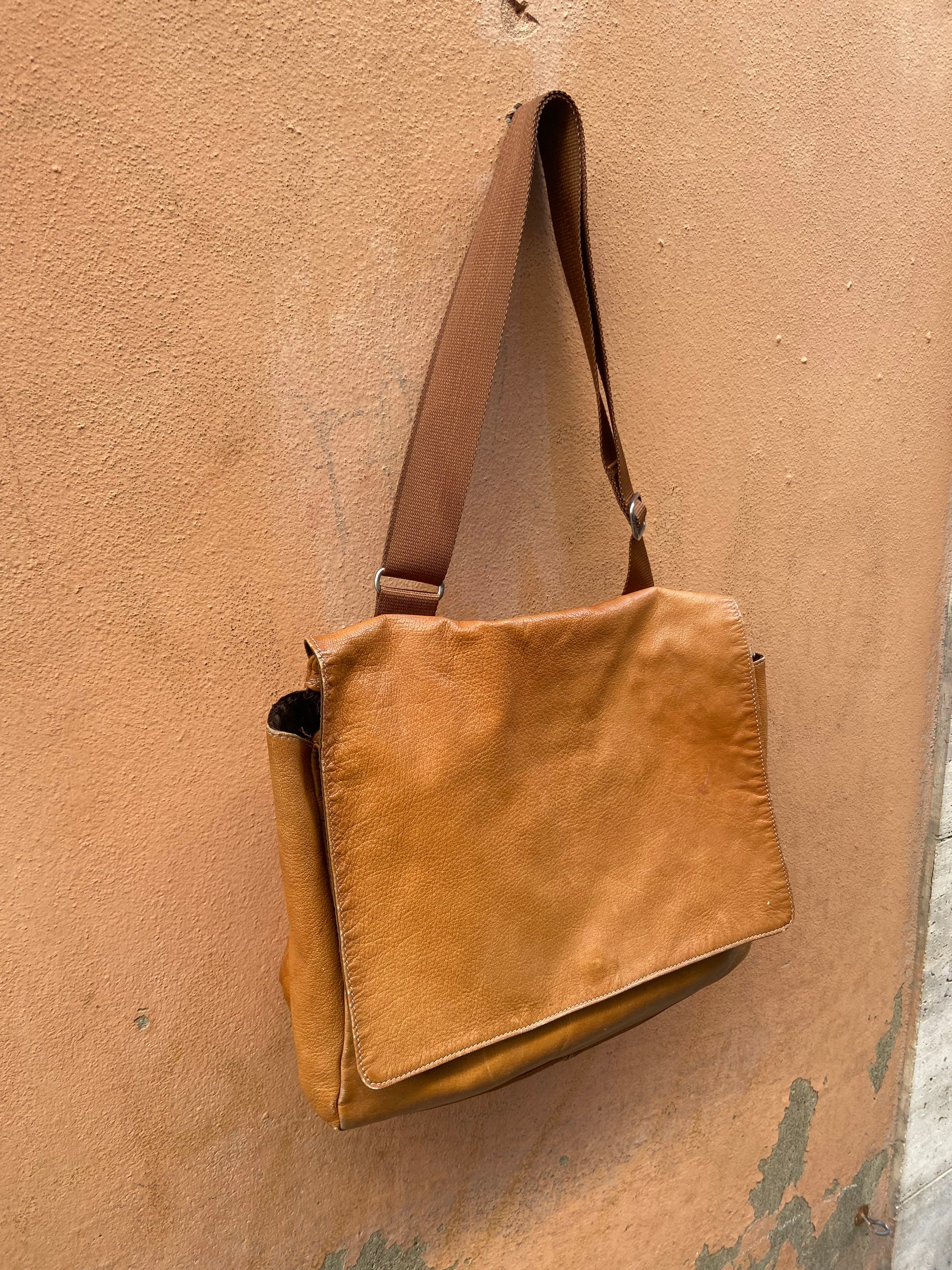 Tan leather shoulder bag with adjustable straps # Prada anni 2000 37x25x12 fodera strappata all’interno - tracolla allungabile in tessuto