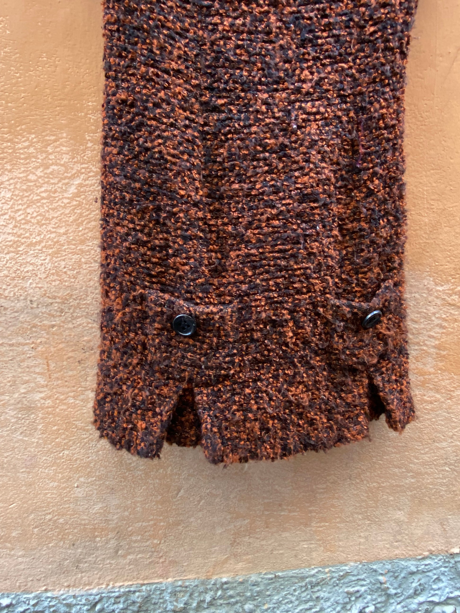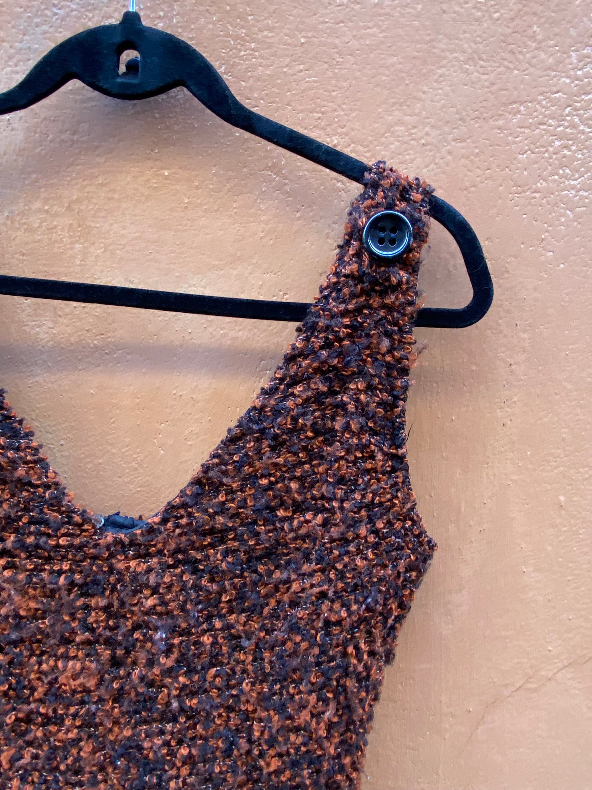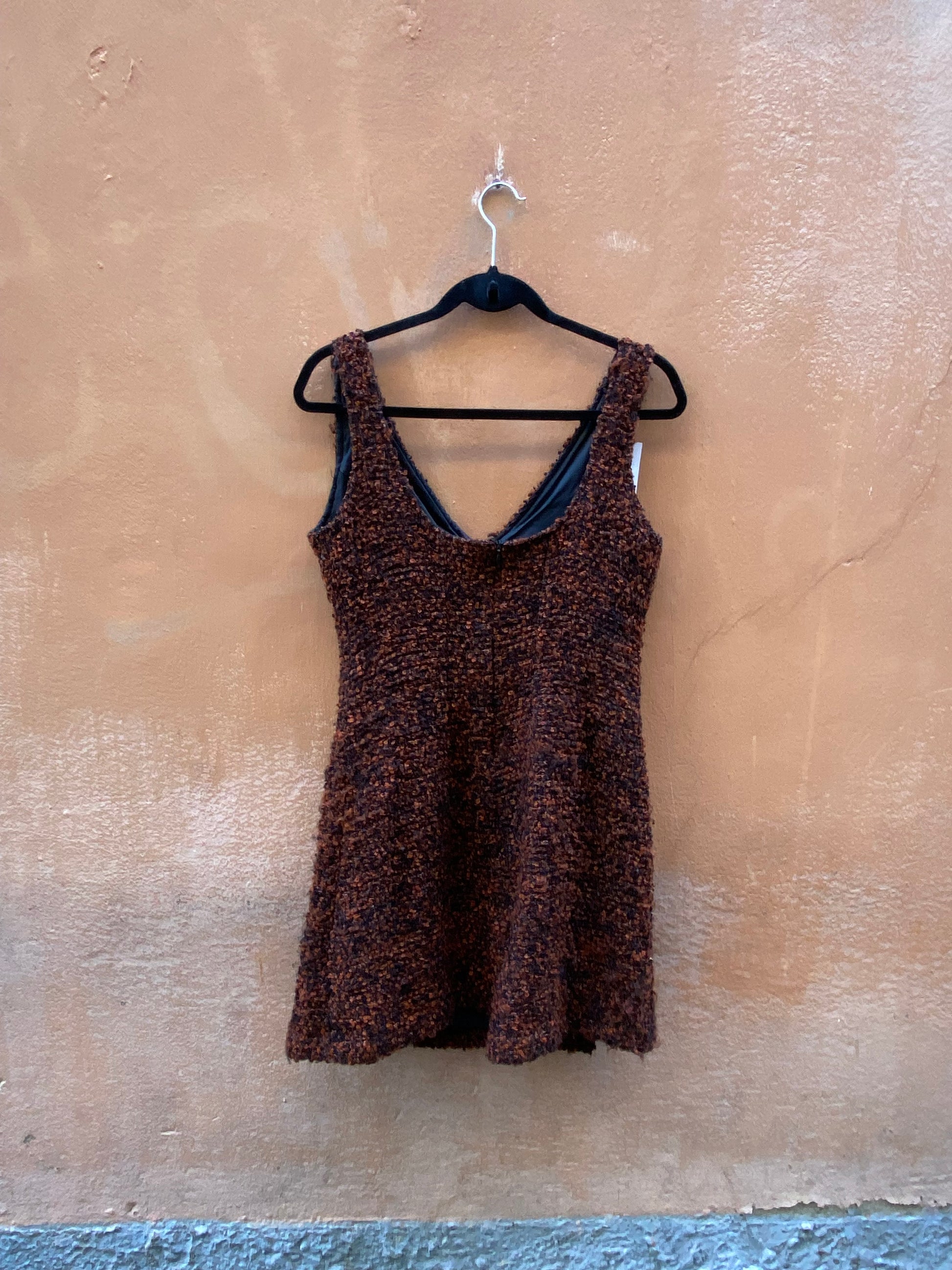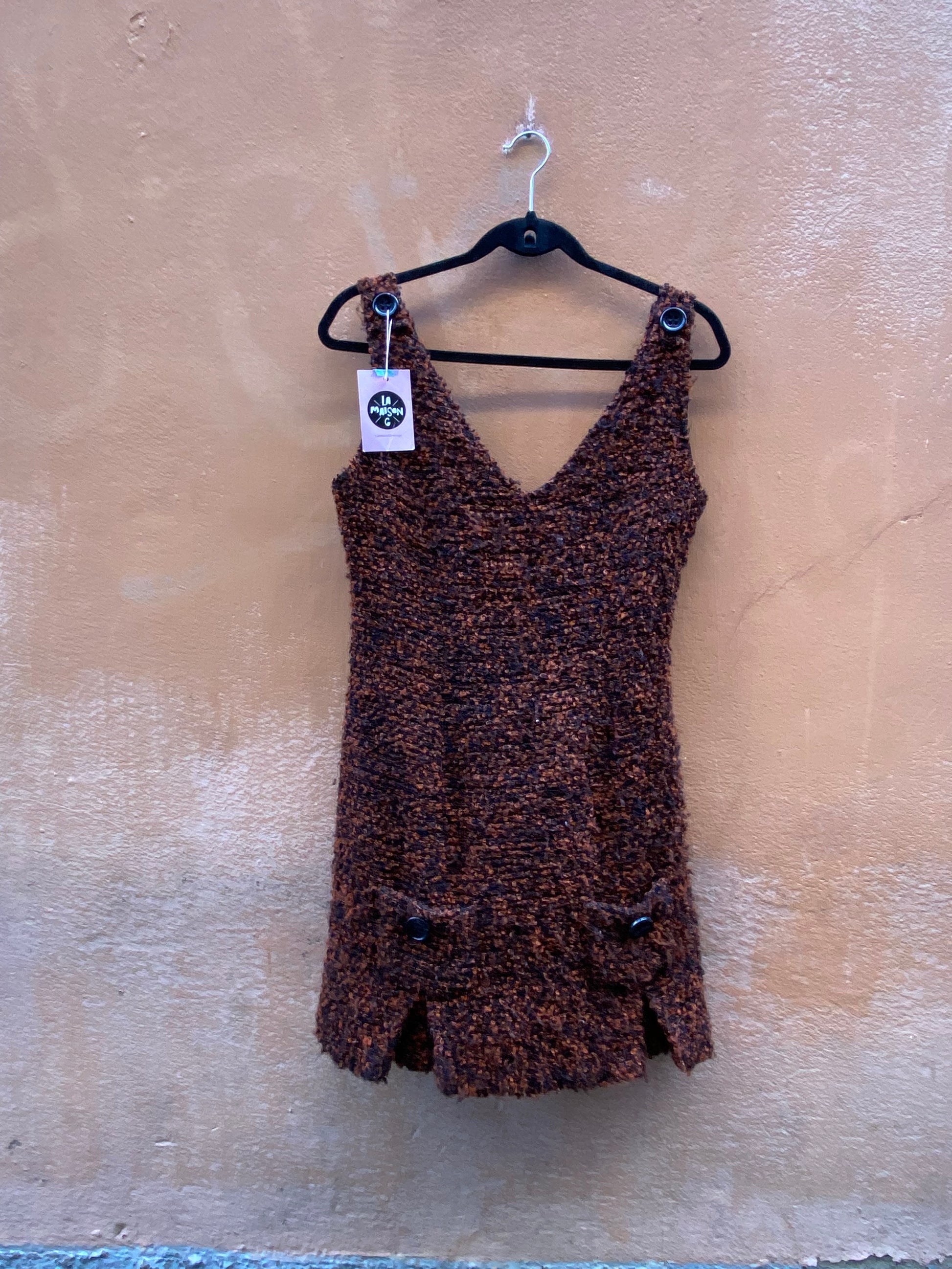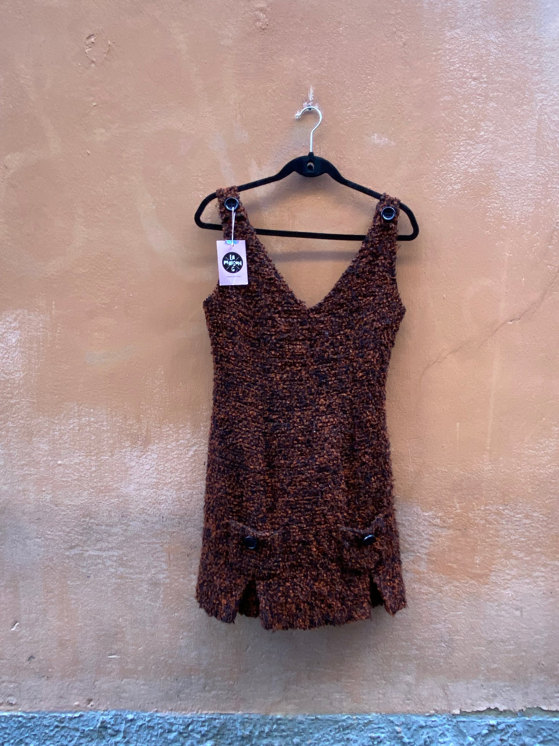 Brown and black knitted mini dress with buckles #festivalvibes scamiciato anni 2000 tg S/m buclé caldissimo con fondo a pieghe e bottoni