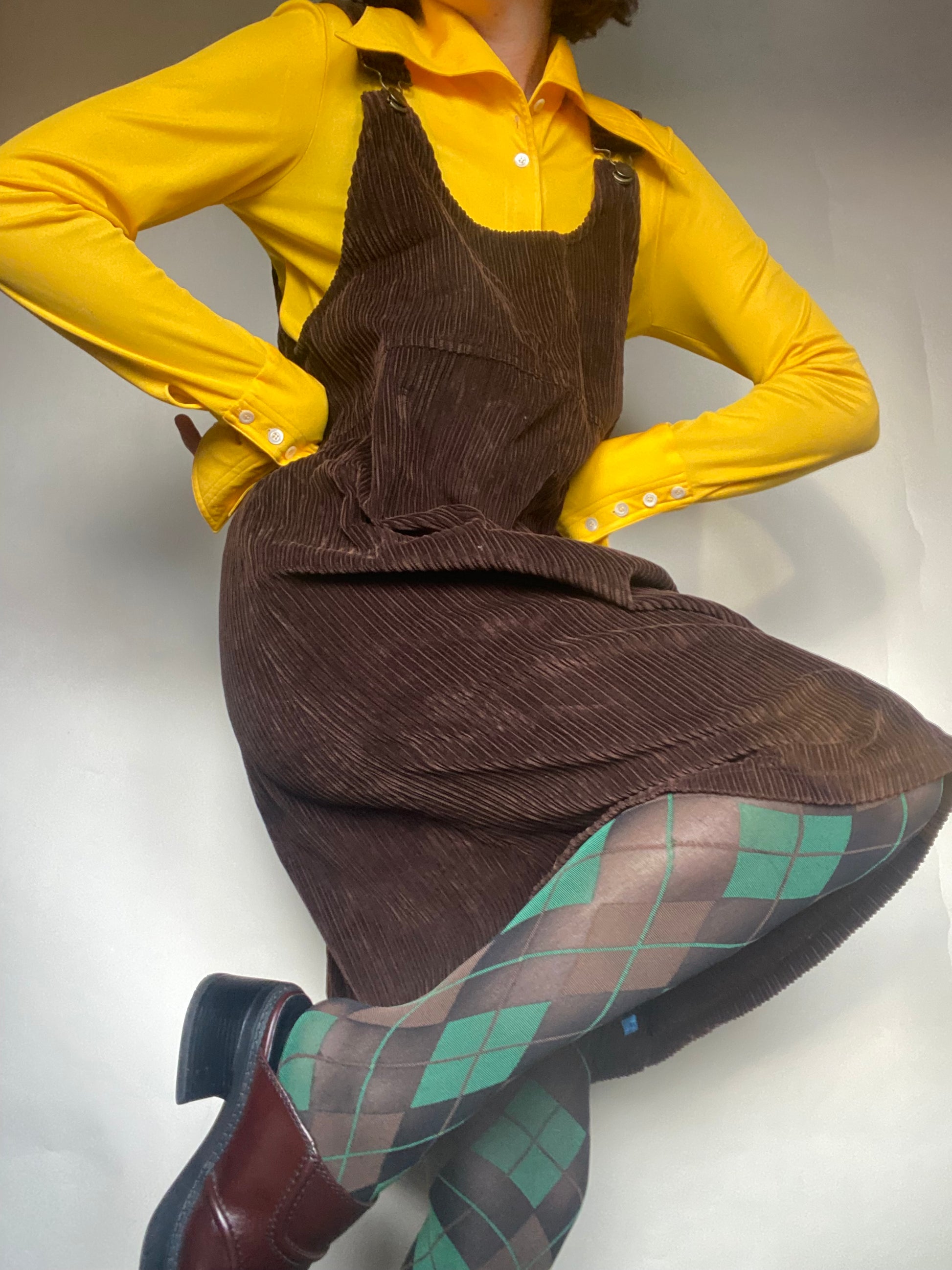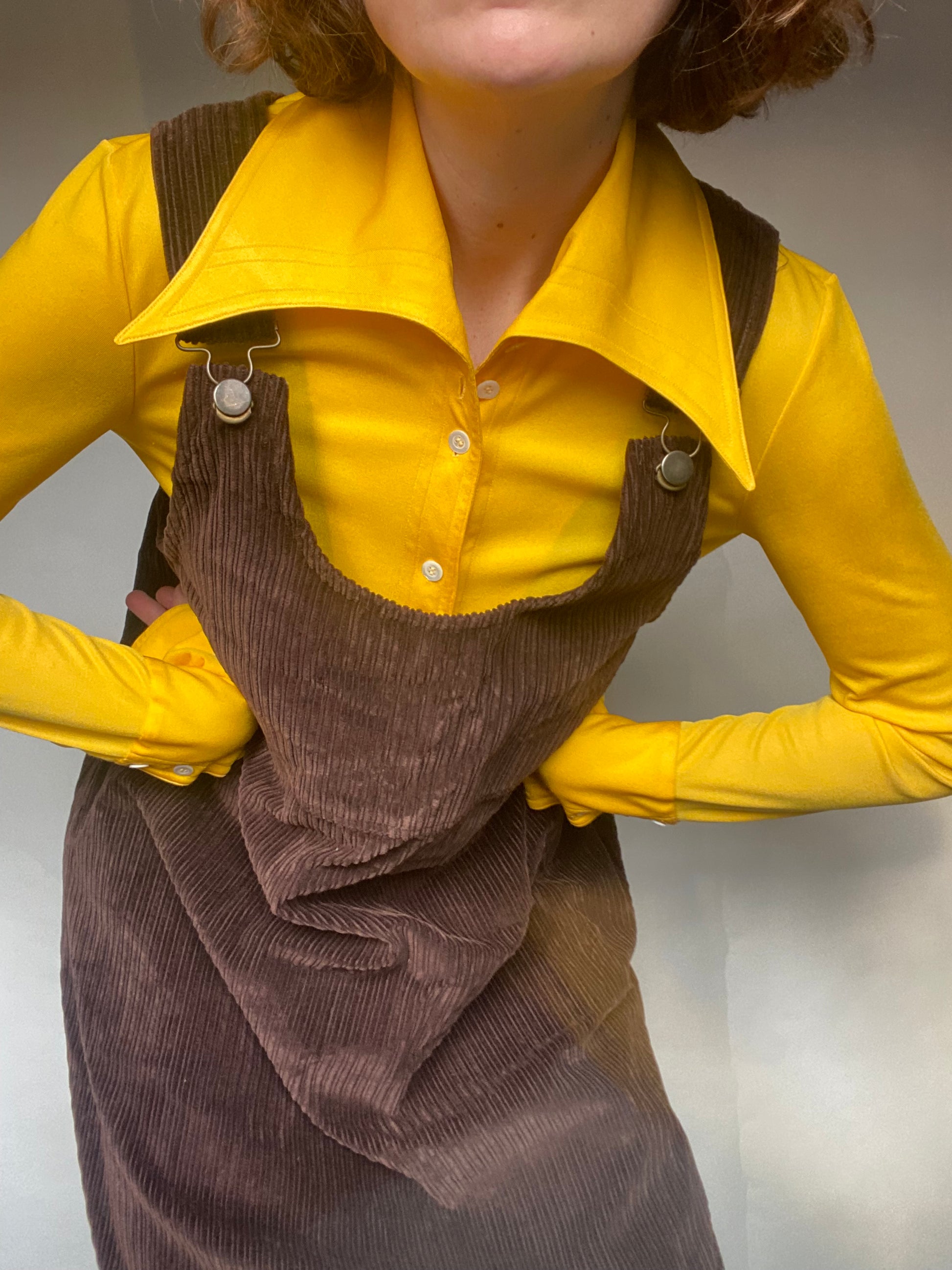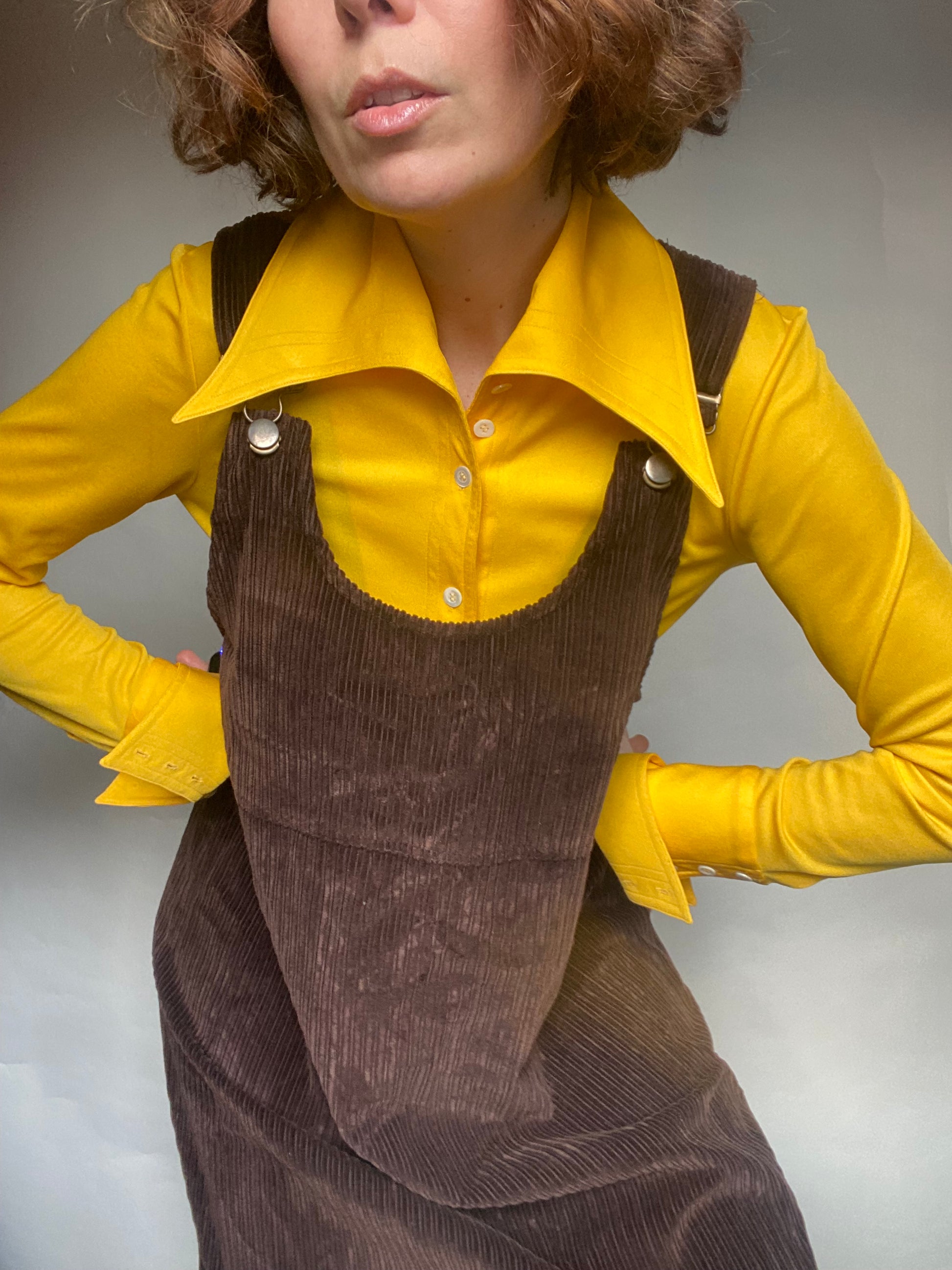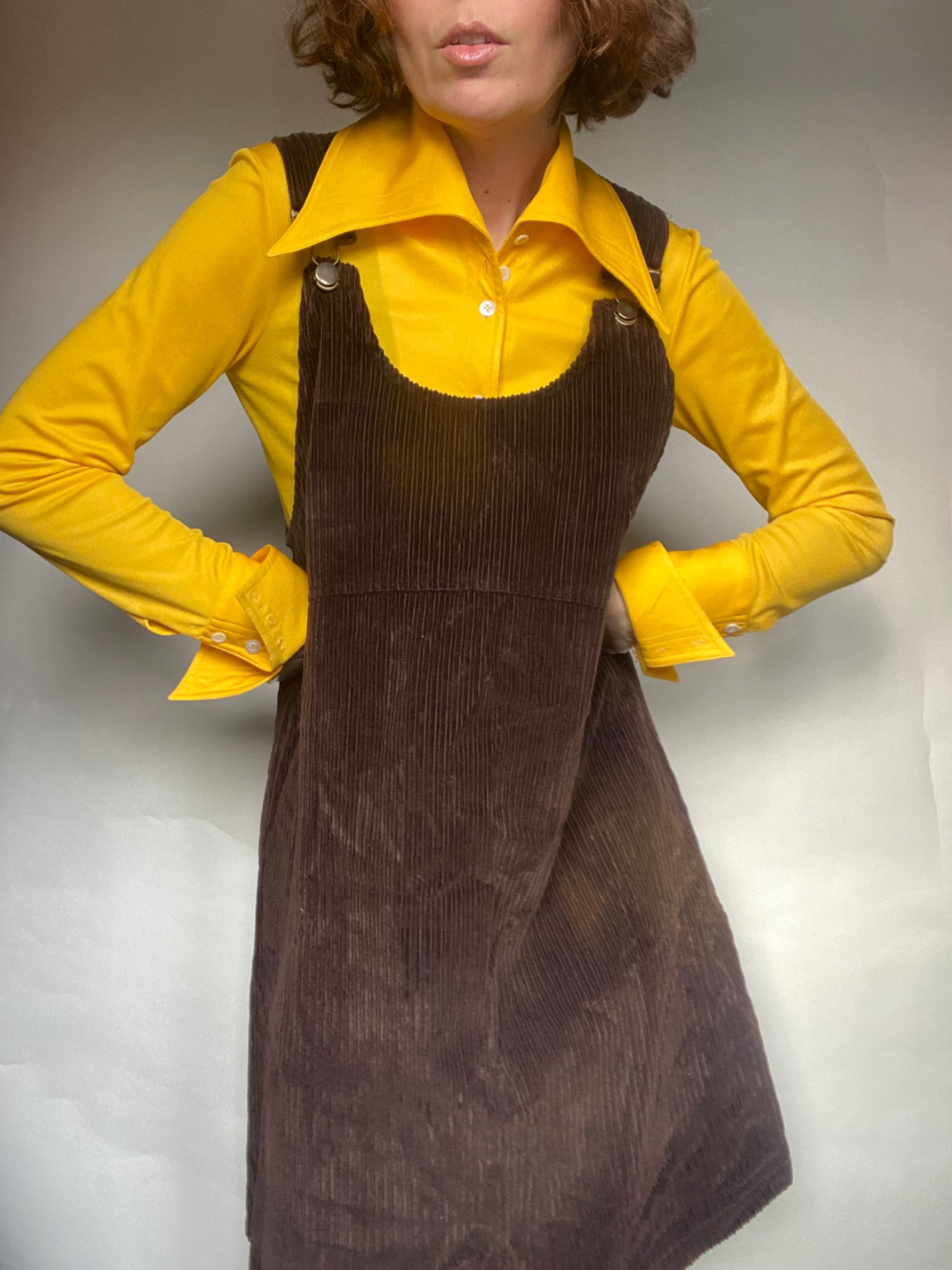 Scamiciato anni 70 velluto a coste Tg S indicata veste più grande nasce come abito premaman ma veste una m/l