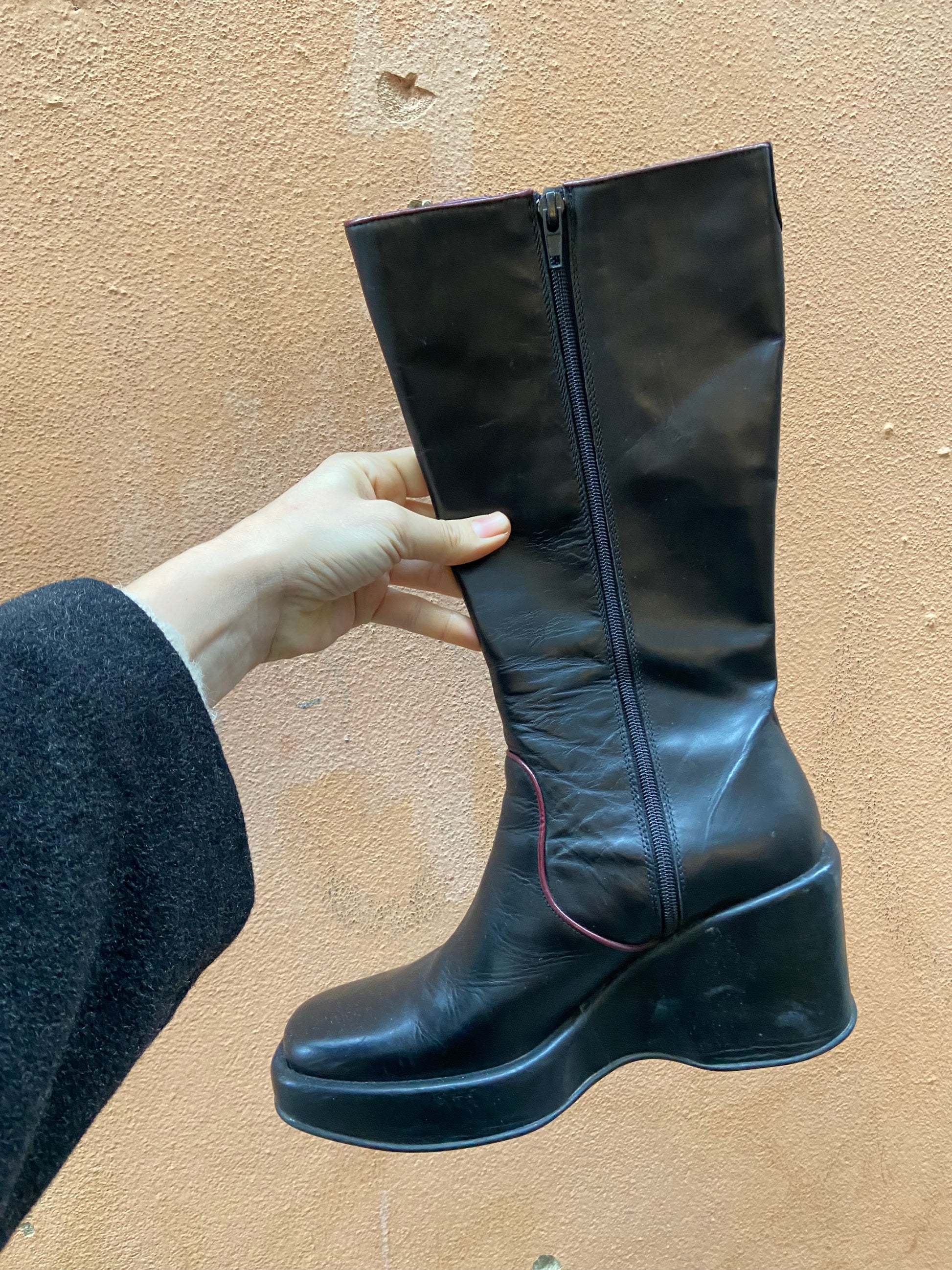Anni 2000 zeppa chunky Bratz n 38 ottime condizioni nero bordi bordeaux