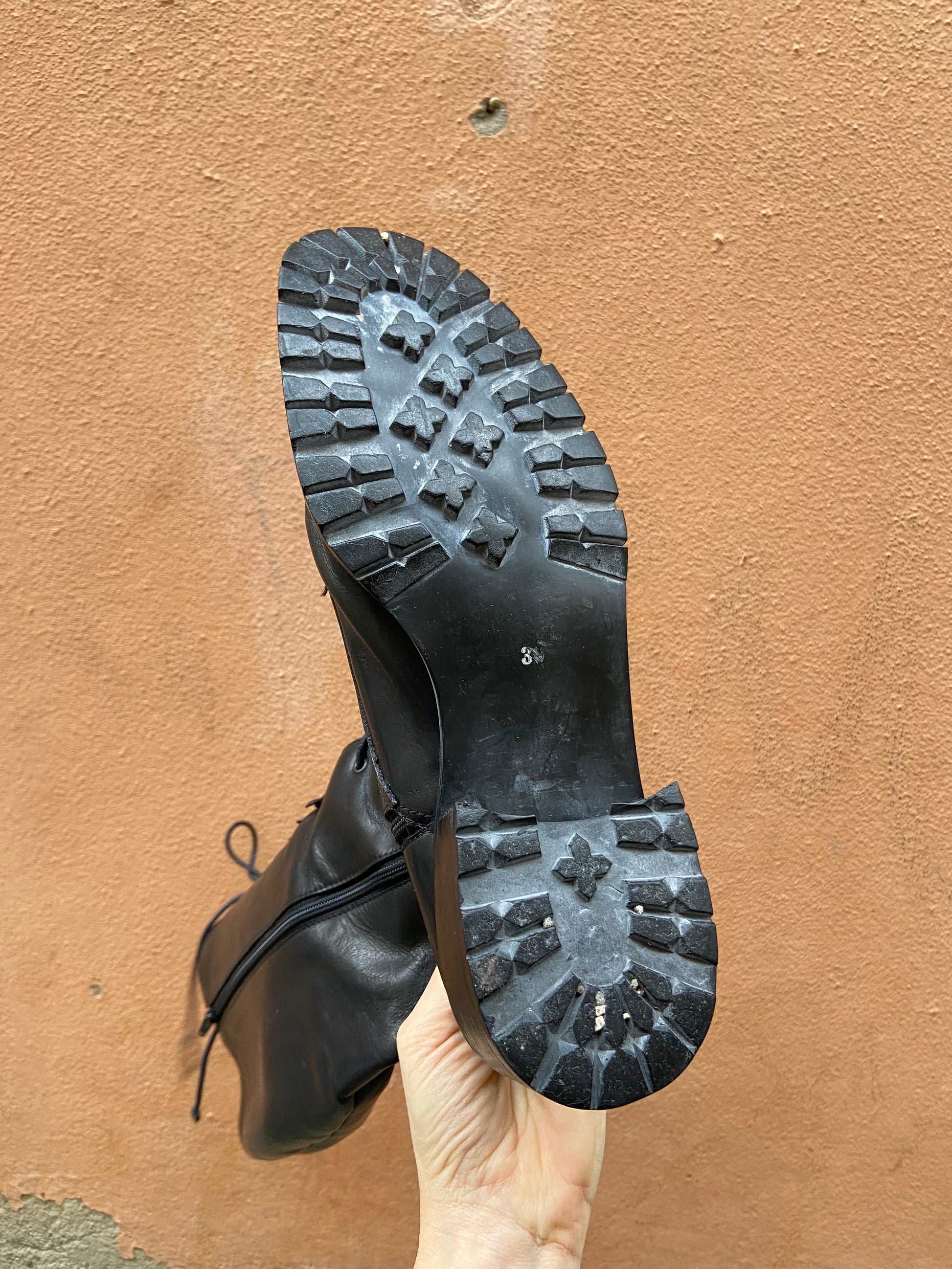 Si va a stringati in pelle neri e artigianali made in Italy numero 39 con cerniera laterale, ottime condizioni suola in gomma carroarmato