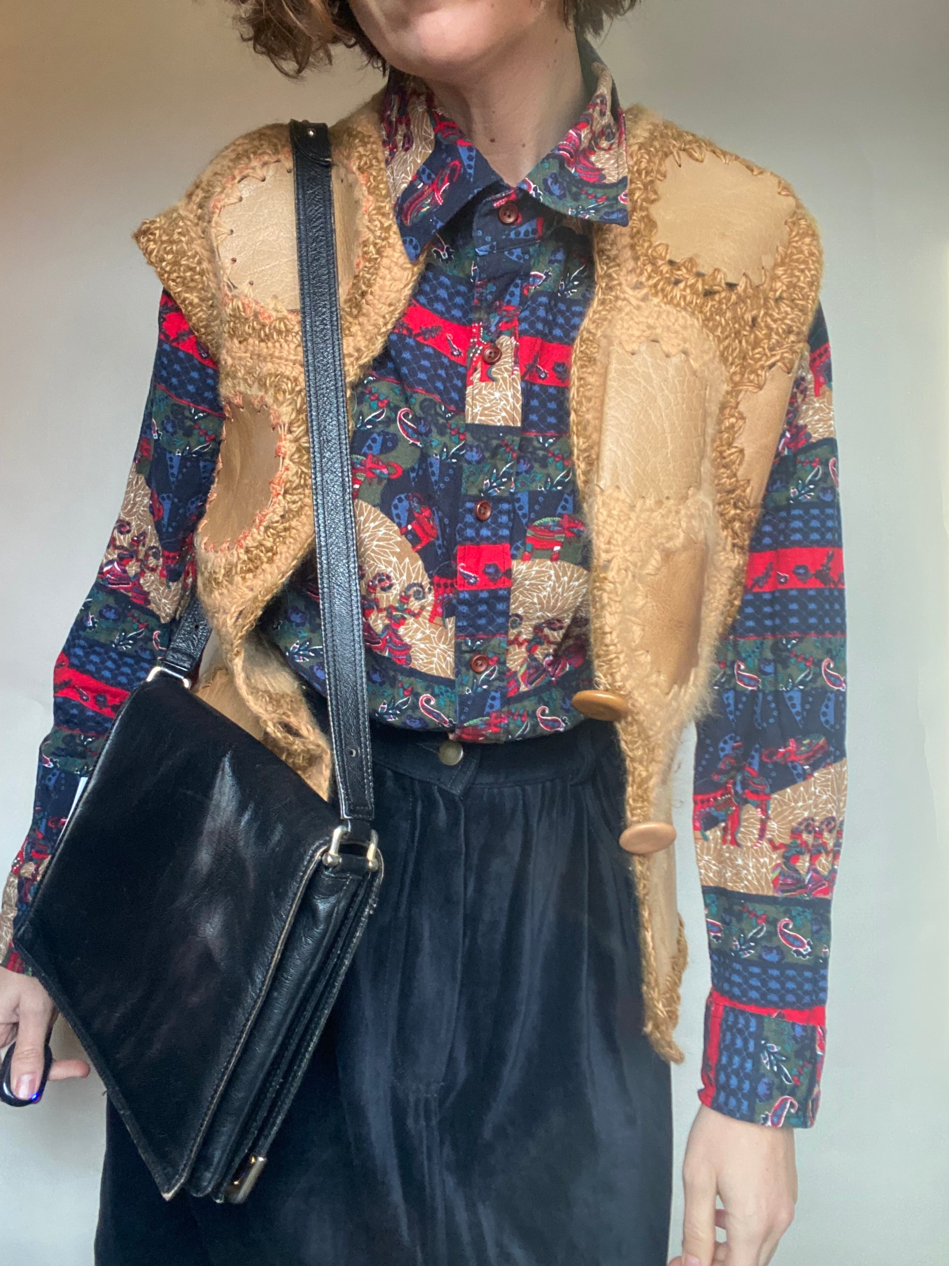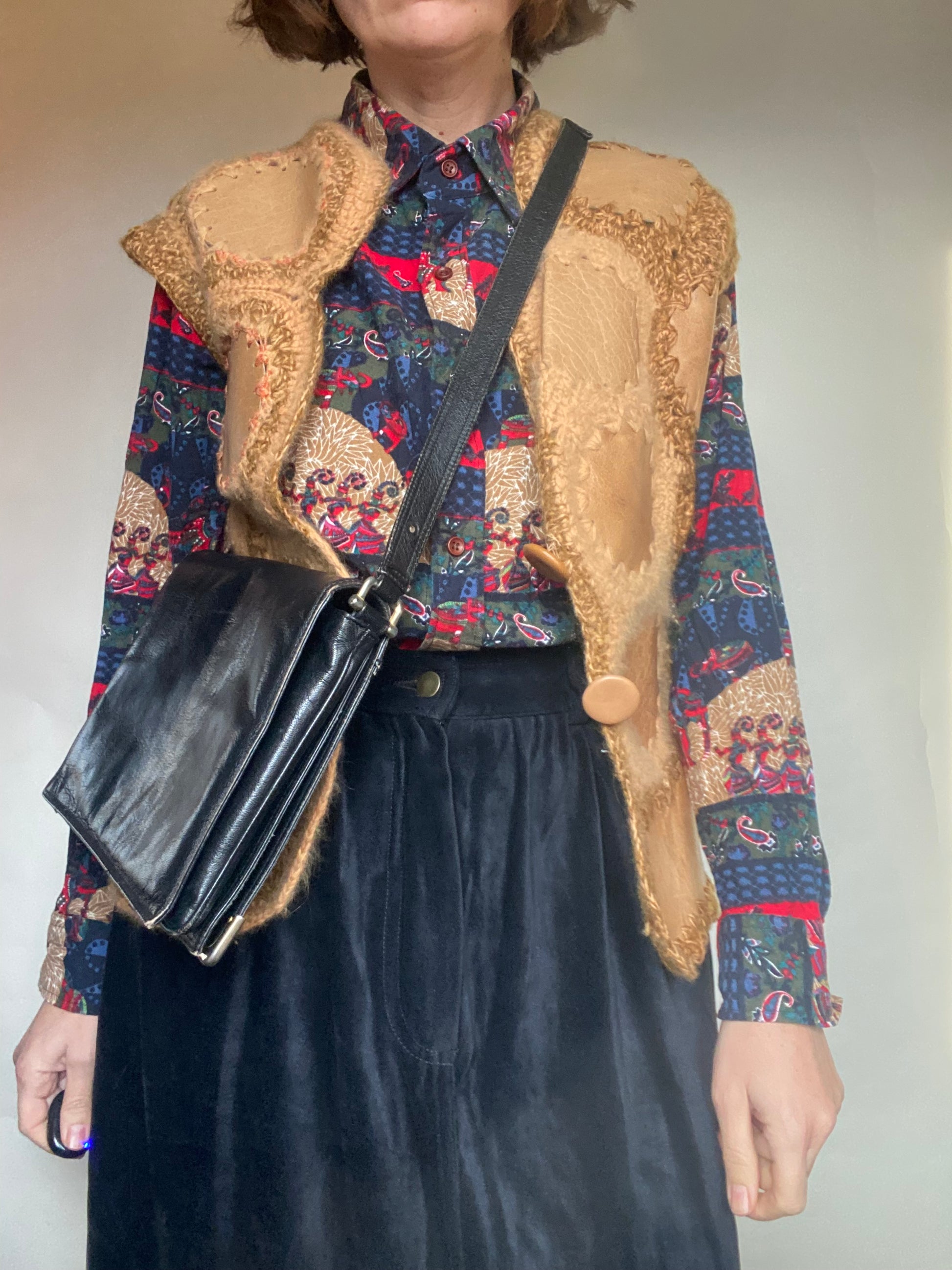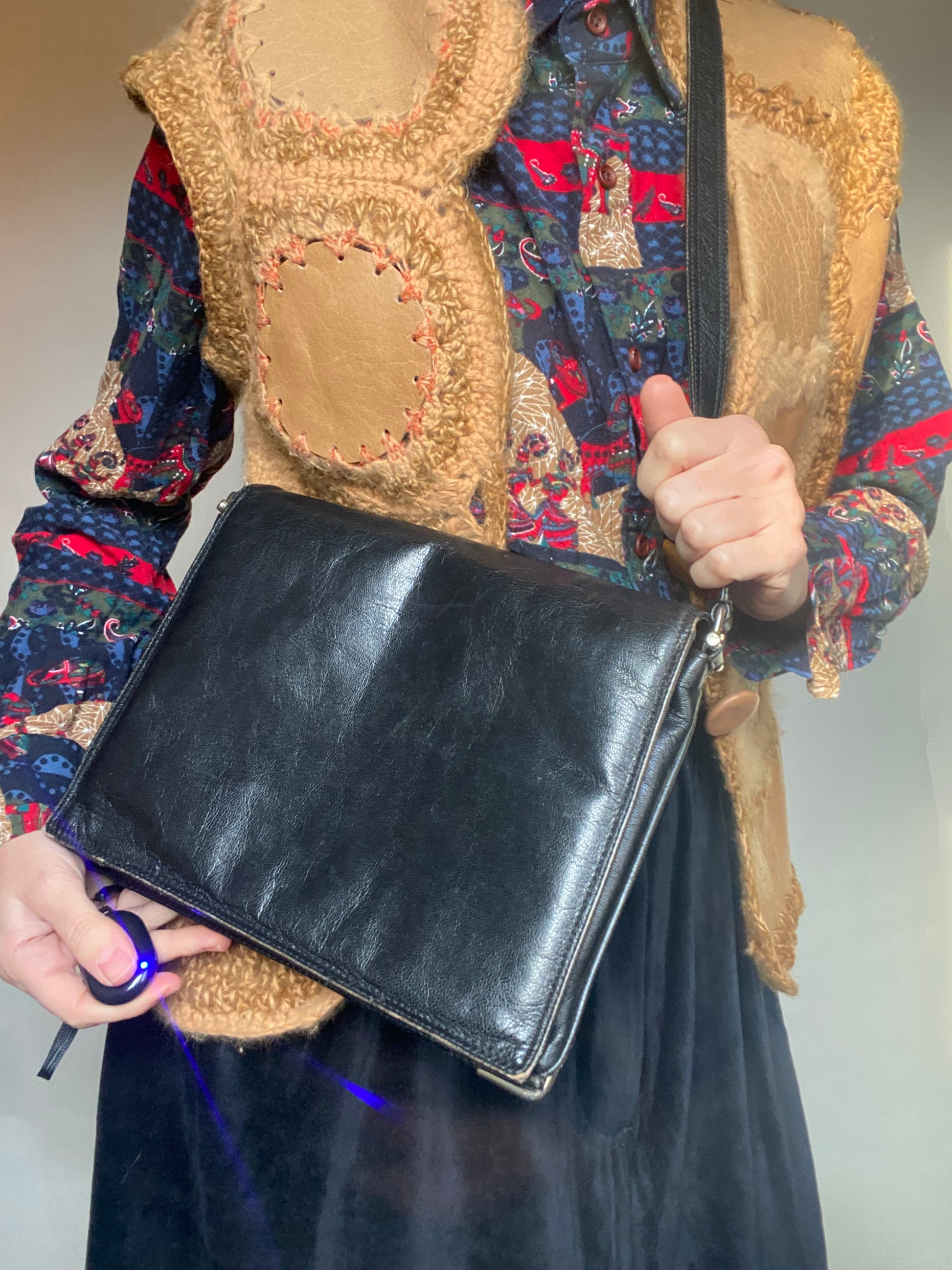 Tracolla in pelle con manico regolabile, vintage nera, ottime condizioni