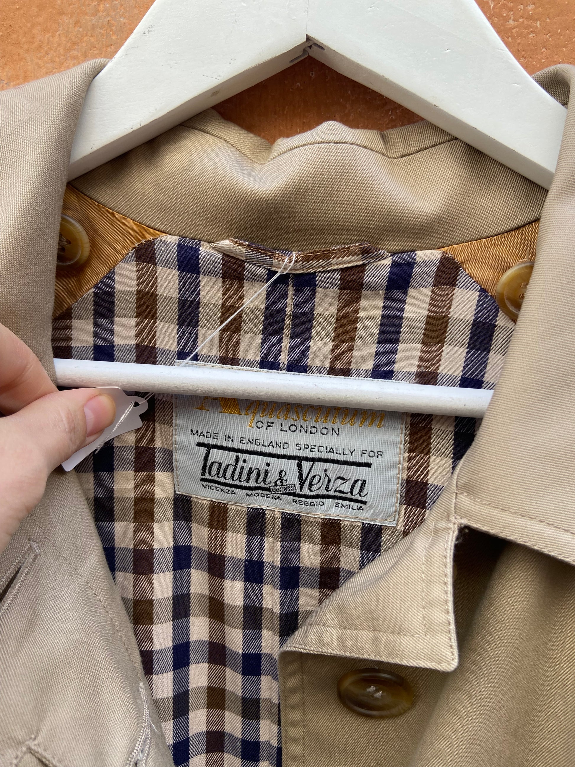 Trench vintage cotone e poliestere condizioni ottime interno foderato quadrettato taglia cancellata veste L uomo